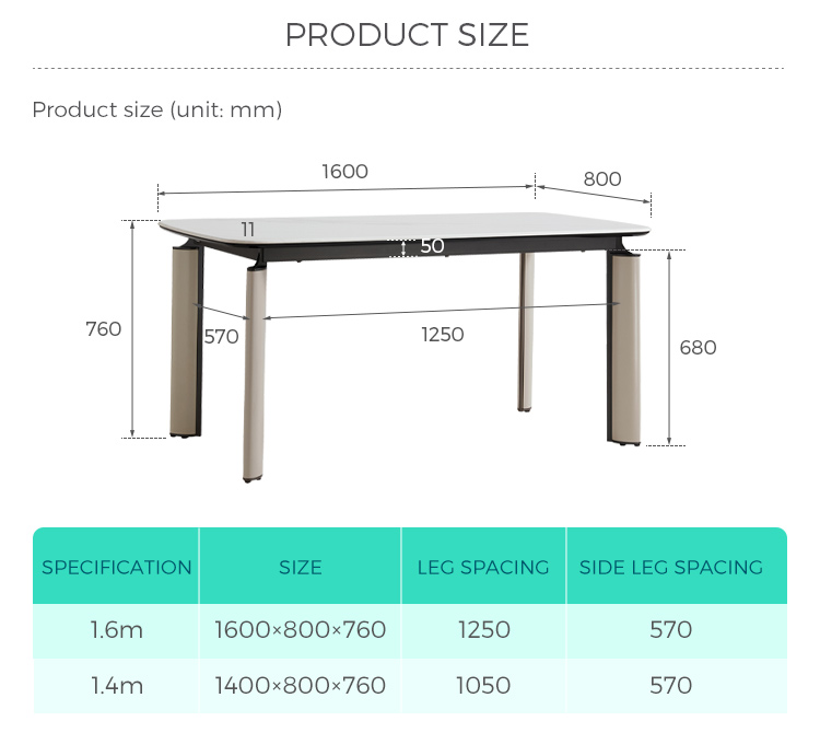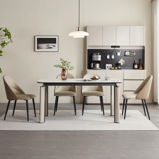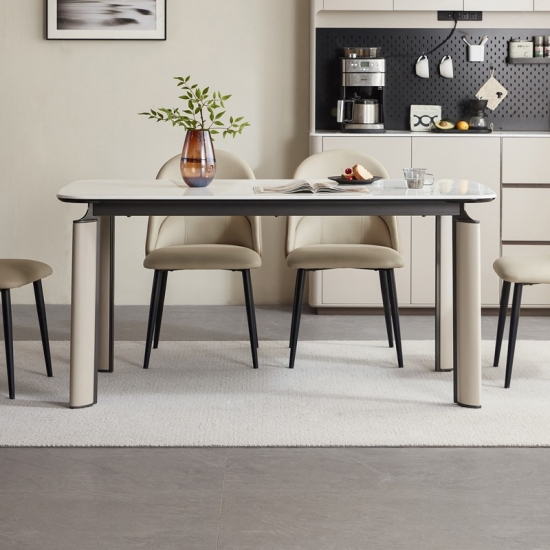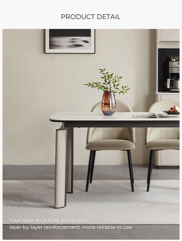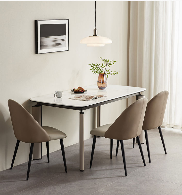 Этот обеденный стол длиной 1,6 метра, разработанный для современной жизни, сочетает в себе минималистичный стиль и практичность. Его четкие нейтральные тона и четкие линии легко впишутся в любой интерьер — от скандинавского шика до эстетики городского лофта. Он идеально подходит для небольших встреч или уютных обедов, позволяя максимально эффективно использовать пространство, не жертвуя изысканностью.