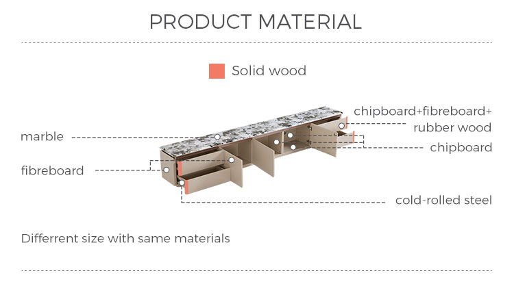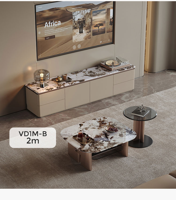 2-метровая тумба под телевизор с мраморной столешницей и несколькими ящиками VD1M-B |
