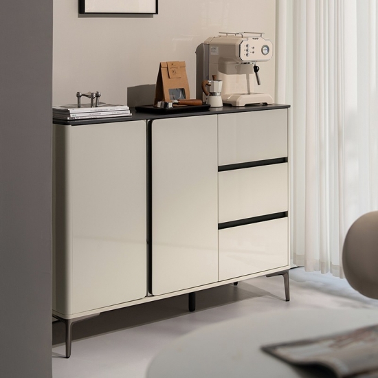 Украсьте свою столовую с помощью этого высококачественного черно-белого буфета, идеально сочетающего в себе современную элегантность и функциональность. Его эффектный двухцветный дизайн, созданный с особым вниманием к деталям, сочетает глянцевую белую отделку с матовыми черными акцентами, создавая смелую, но неподвластную времени эстетику.