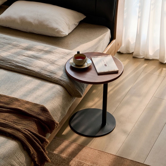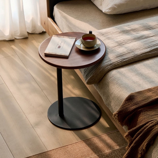 Круглый переносной журнальный столик коричневого цвета для гостиной и спальни RQ4J-A |