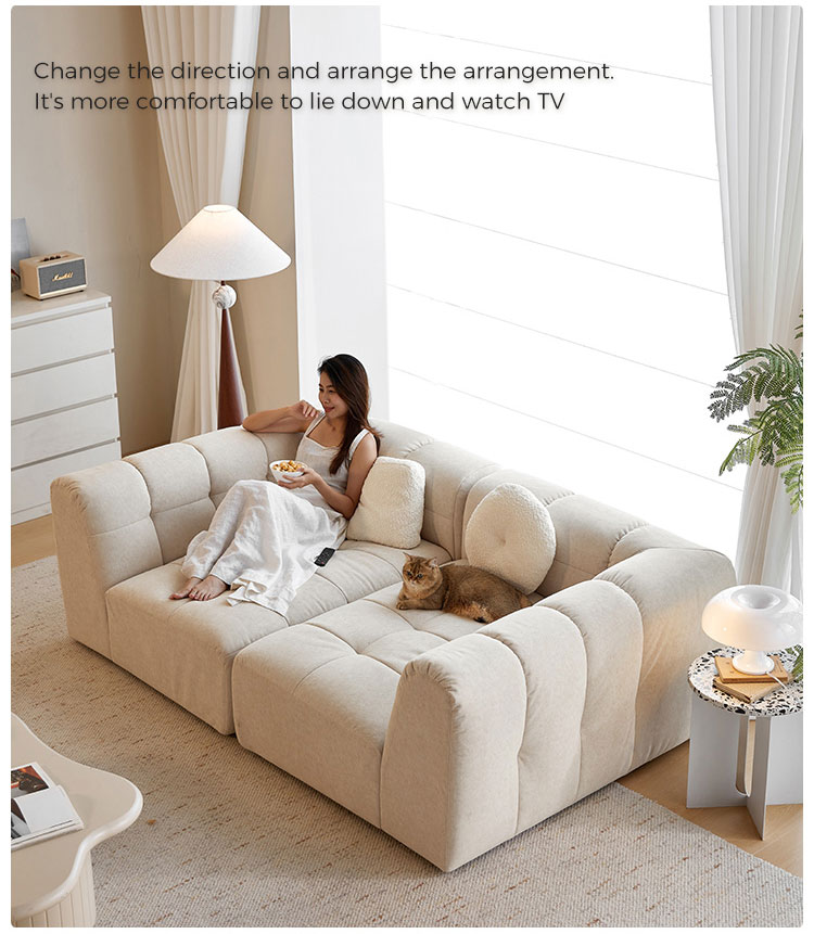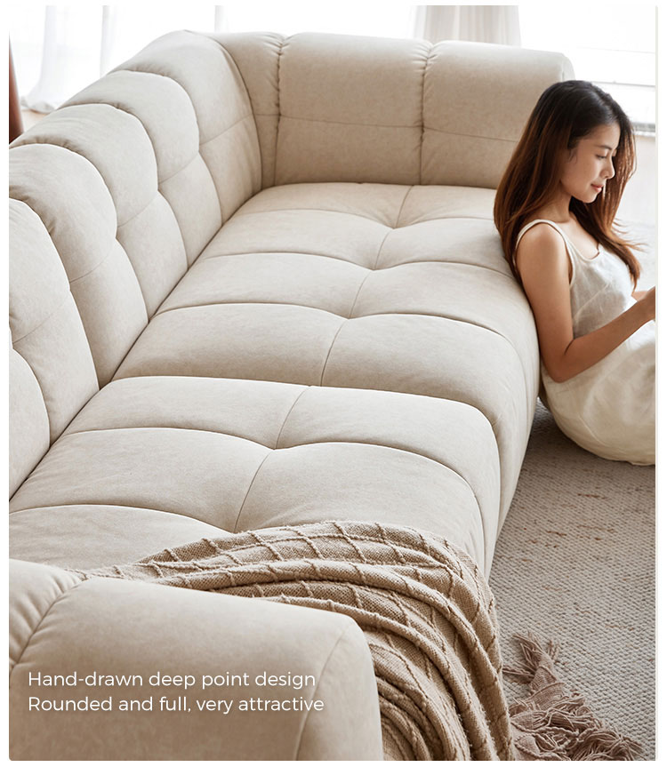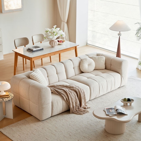 Погрузитесь в мир облачного комфорта с нашим большим диваном из белой ткани «Кошачий коготь». Этот диван, созданный для полного расслабления и долговечный, сочетает в себе роскошную мягкость и надежность, не вызывающую никаких проблем. Ощутите неповторимые ощущения от нашей четырёхслойной подушки сиденья. Она мягко и глубоко погружает вас в тело, обеспечивая исключительную всестороннюю поддержку и нежно убаюкивая вас.