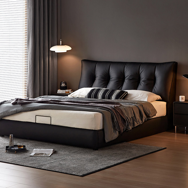 Украсьте свою спальню нашей современной двуспальной кроватью из чёрной кожи — идеальным сочетанием современного дизайна и роскошного комфорта. Изготовленная из высококачественных материалов в минималистичном стиле, эта кровать добавит изысканности любому помещению и обеспечит спокойный сон.