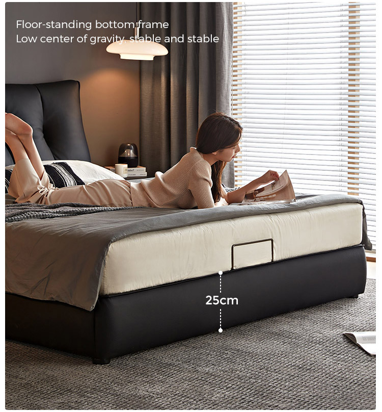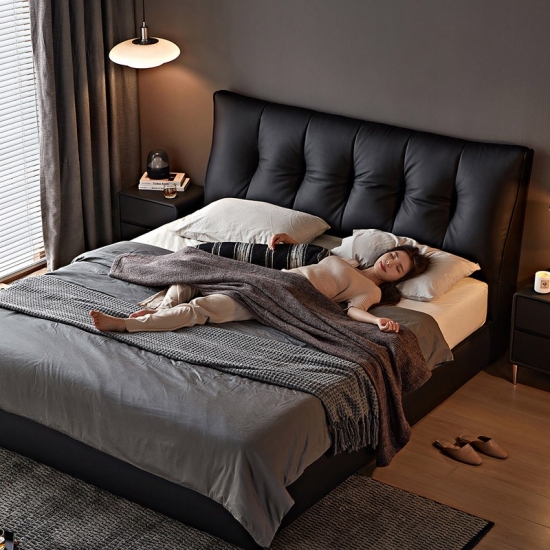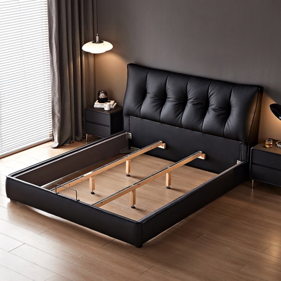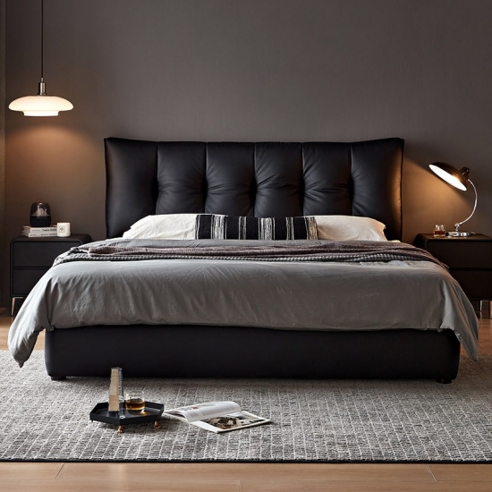 7Элегантность и комфорт. Современная двуспальная кровать из черной кожи TPC566-A
