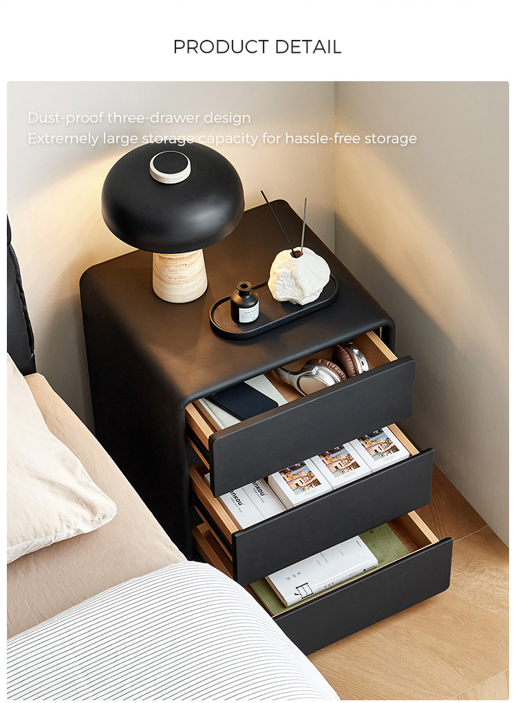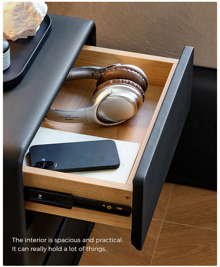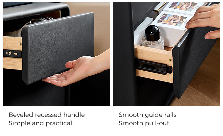 2. Плавно выдвижной ящик: единственный большой ящик оснащен бесшумной встроенной системой металлических направляющих для легкого использования, позволяя аккуратно организовать все необходимые вещи и легко до них добраться.