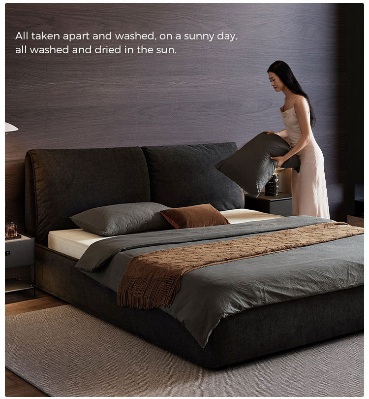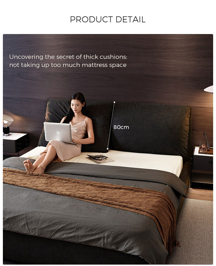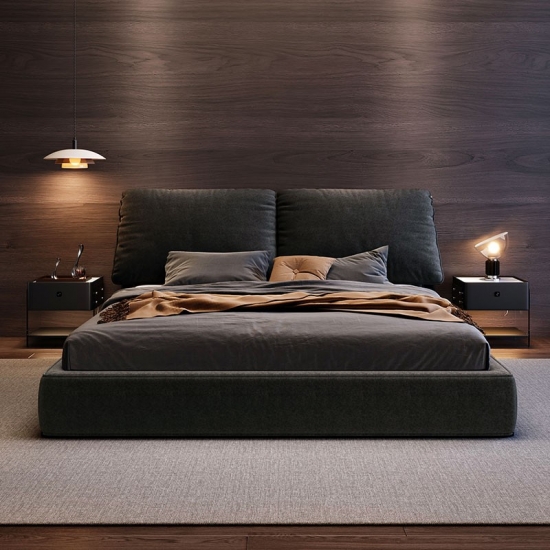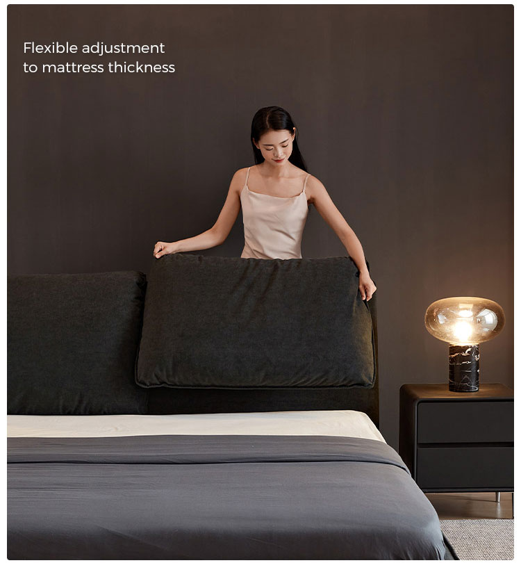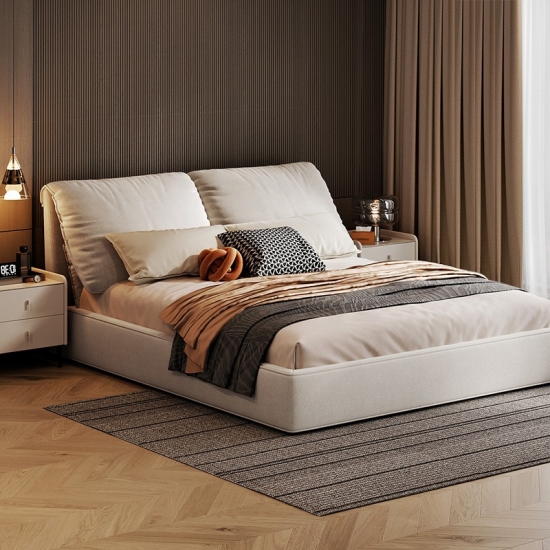 Отличительная особенность — обивка из ткани «кошачий коготь». Это плотный синтетический материал, сотканный по специальной технологии, обеспечивающей устойчивость к истиранию, царапинам и проливанию жидкостей. Не позволяйте деликатному названию ввести вас в заблуждение: эта ткань устойчива к износу и разрывам, что делает её отличным выбором для энергичных семей с домашними животными или детьми. Мягкий, напоминающий замшу, песочно-бежевый цвет привнесёт ощущение тепла и покоя в вашу спальню.