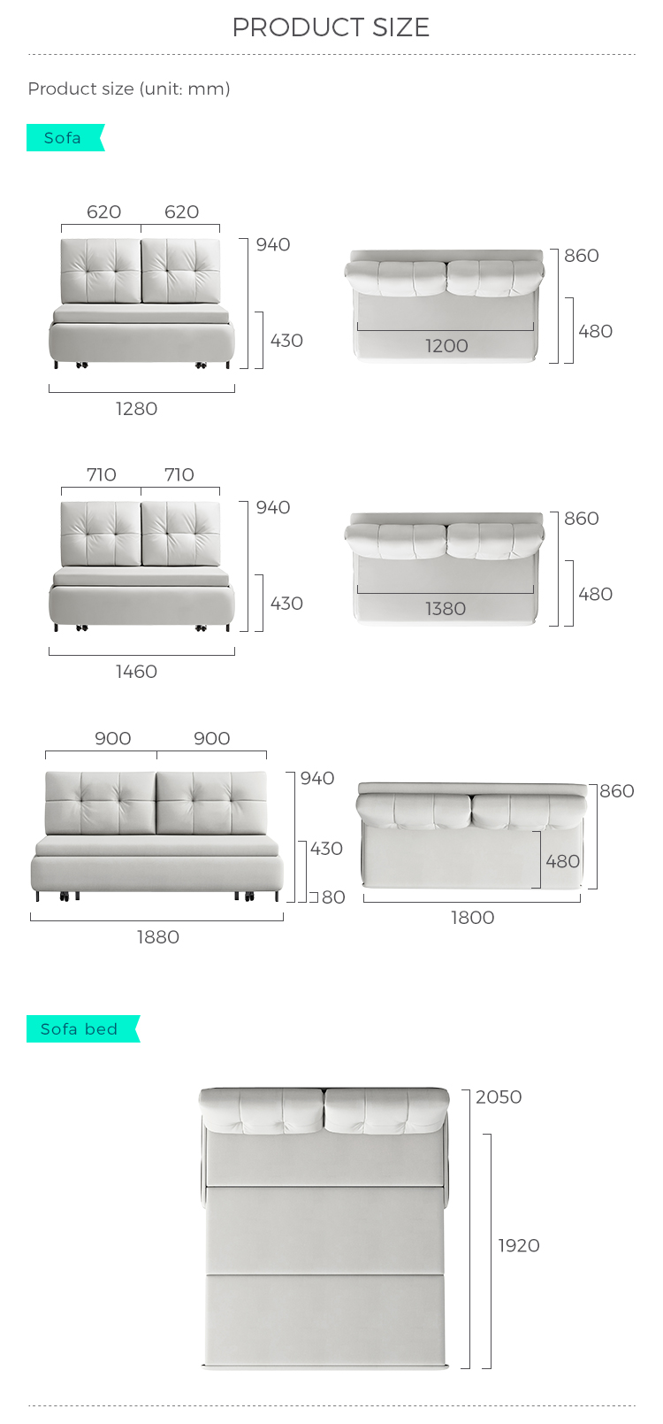 7Раскладной 2-местный современный диван-кровать для гостиной TBS037-A