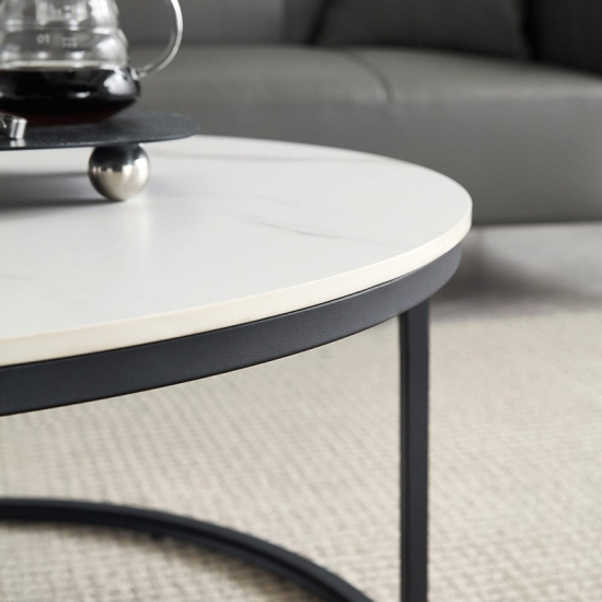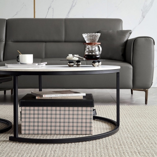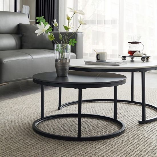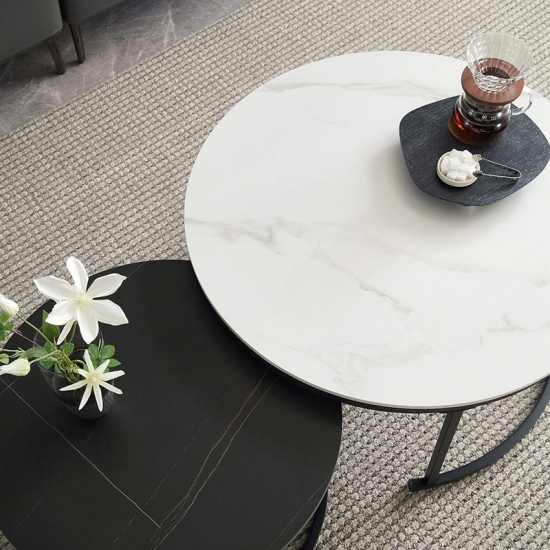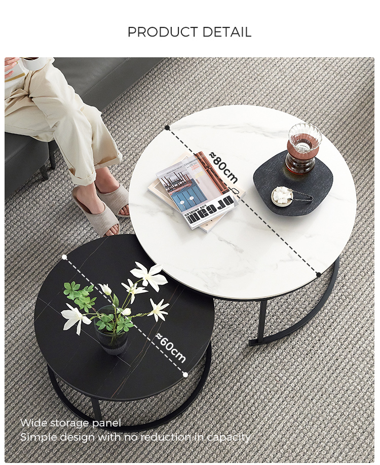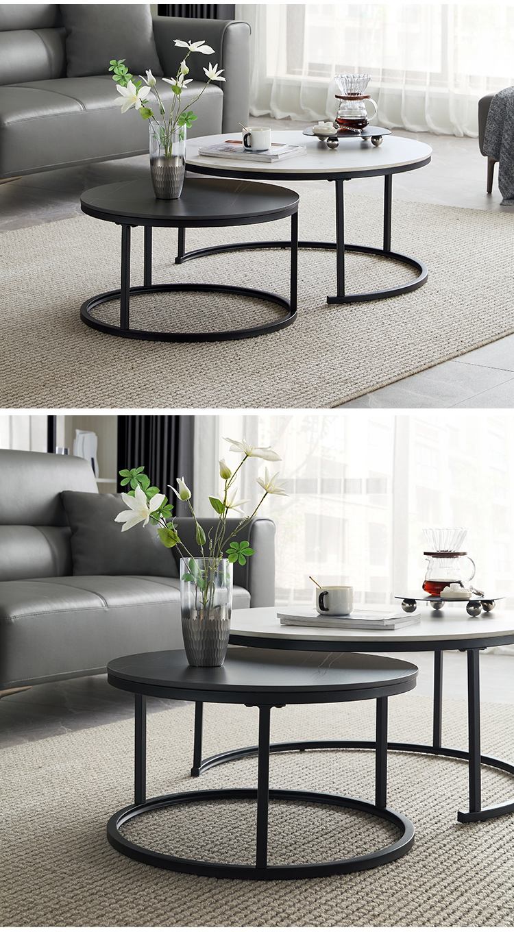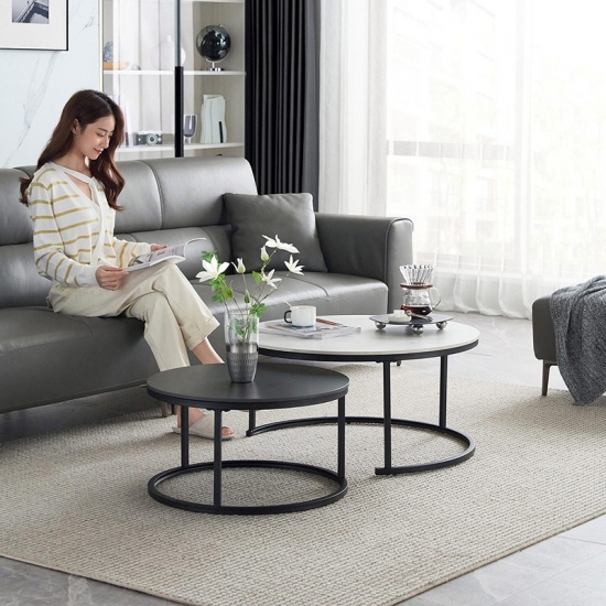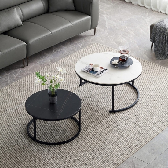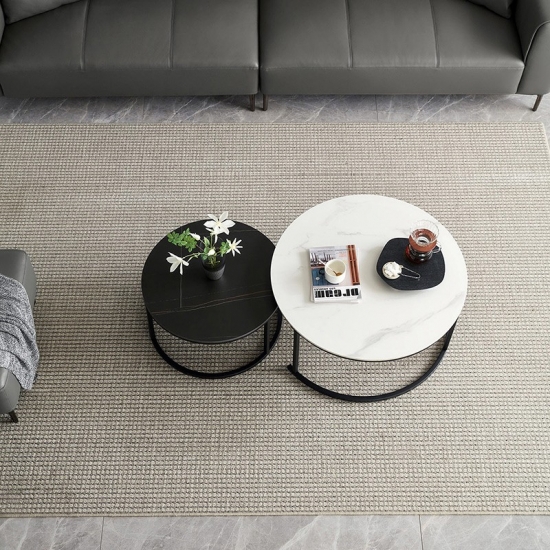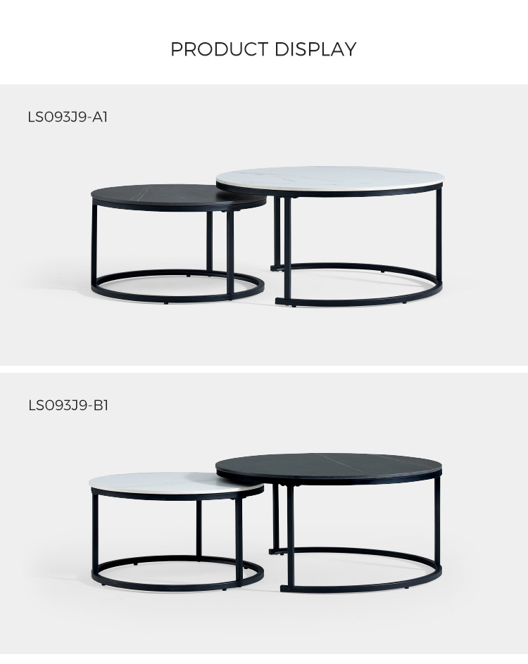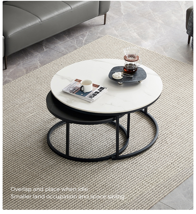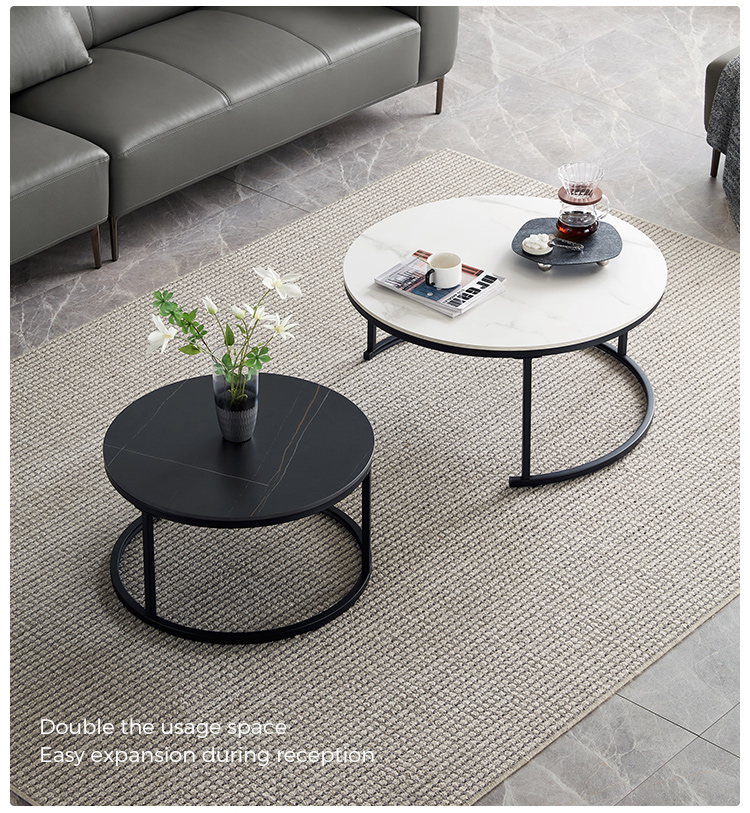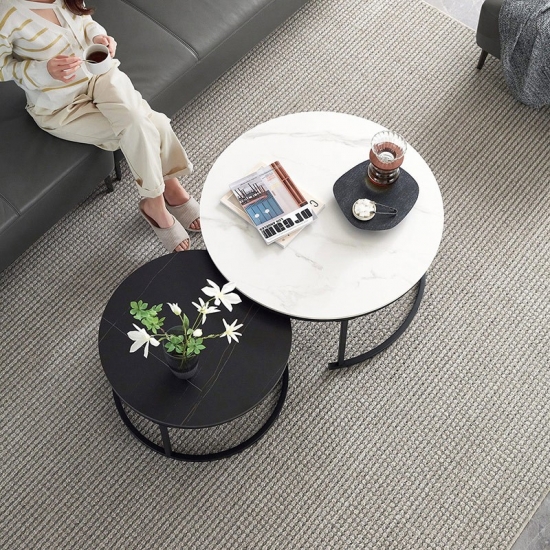 Глядя на новый журнальный столик в индустриальном стиле от LINSY. Этот набор раскладных столиков, состоящий из двух предметов, имеет блестящую золотую основу и столешницы в мраморном стиле, что создаст шикарный и изысканный стиль в вашей гостиной. Каждый стол изготовлен из открытого стального листа круглой формы с гладким золотистым оттенком, и их можно легко разобрать или сложить вместе, чтобы сэкономить место.