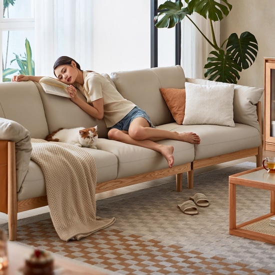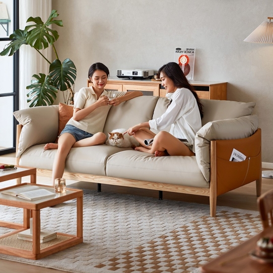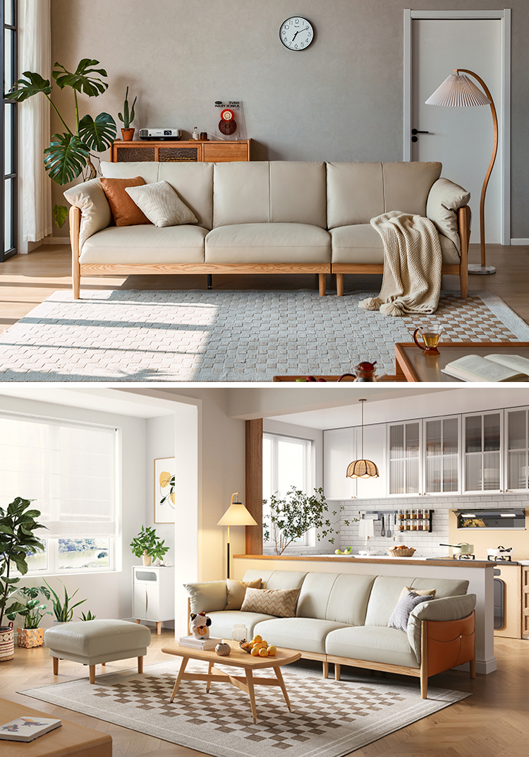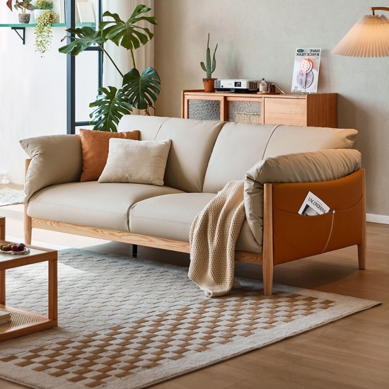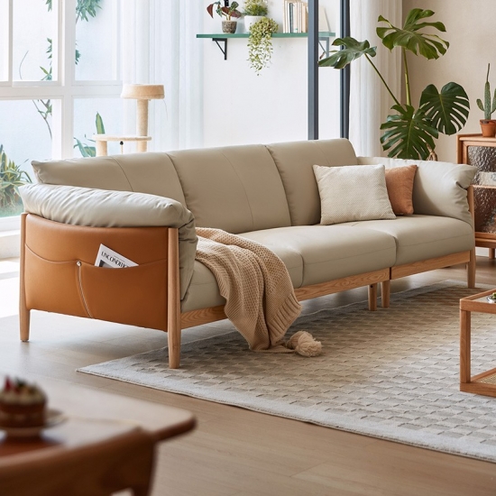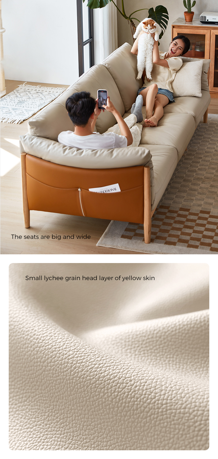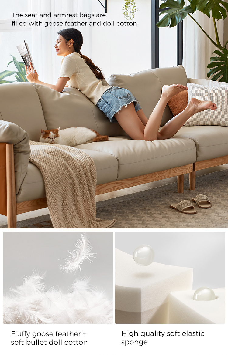 Приходите посмотреть на новый кожаный диван с деревянными ножками. Он изготовлен из цельного деревянного каркаса, прочный каркас с угловыми блоками достаточно вместителен для больших семей и больших шезлонгов. Гладкие кожаные подушки обеспечат мягкую посадку на долгие годы.