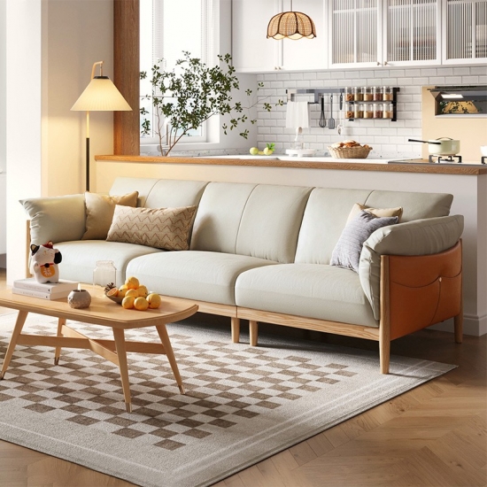 7Светлый трехместный мягкий кожаный диван для дома и гостиницы PS087-A