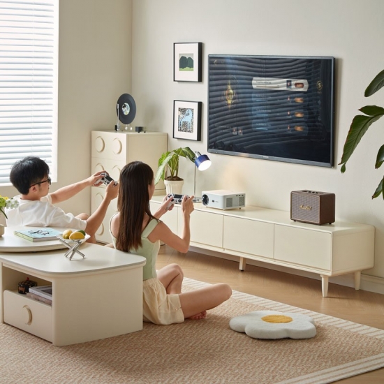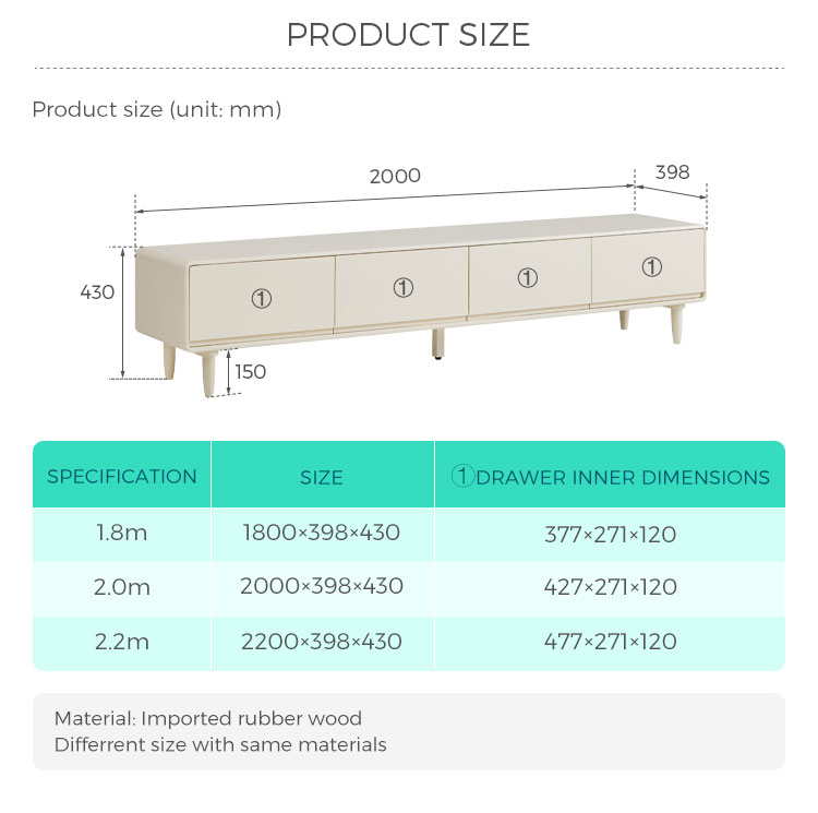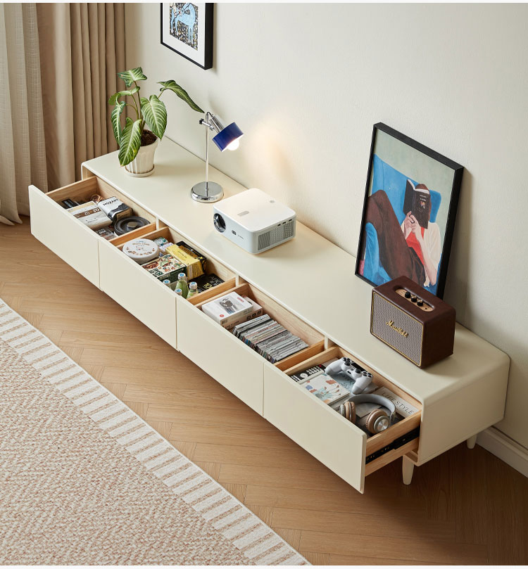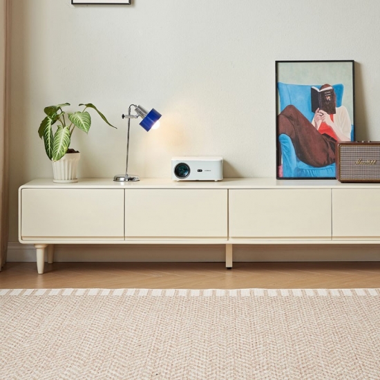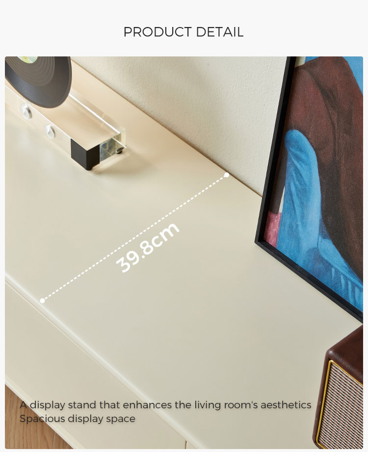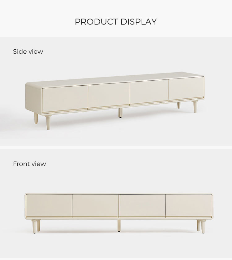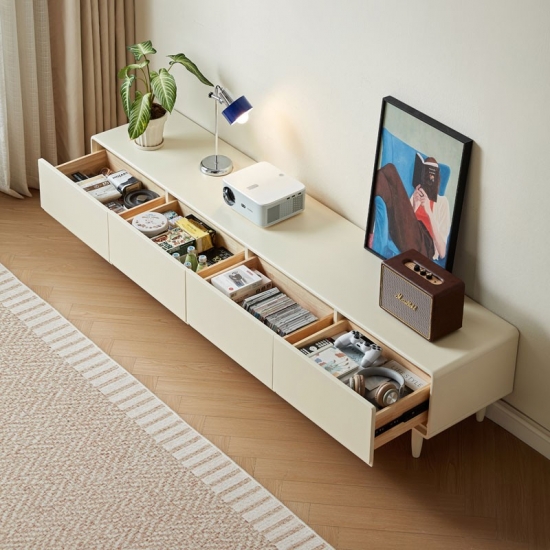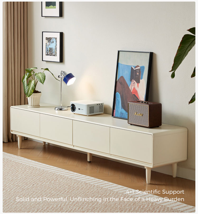 Эта элегантная тумба шириной 1,8 метра сочетает в себе четкие линии и практичное пространство для хранения. Благодаря четырем плавно выдвигающимся ящикам и прочным деревянным ножкам, она лёгкая и воздушная, позволяя хранить все необходимые медиафайлы организованно и под рукой. Её белоснежная отделка и чёткий силуэт станут ярким и воздушным акцентом в любой комнате.