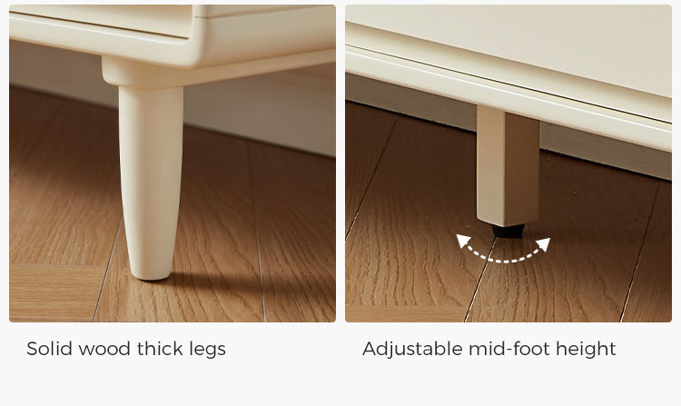 Элегантный фасад: приподнятые ножки из массива дерева не только обеспечивают устойчивость, но и придают лёгкость и современный вид. Свободный проход облегчает уборку и добавляет нотку изысканности.