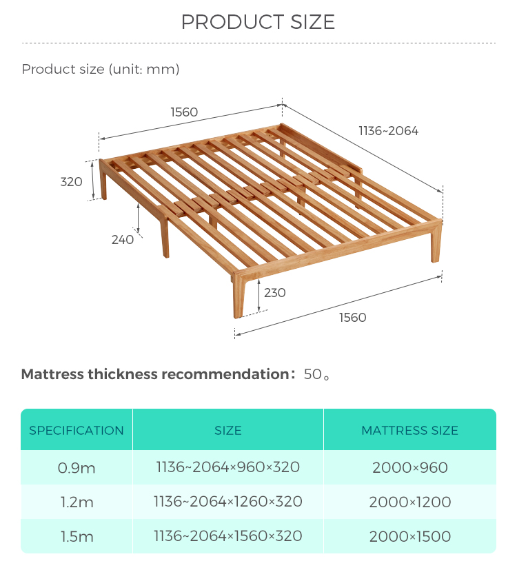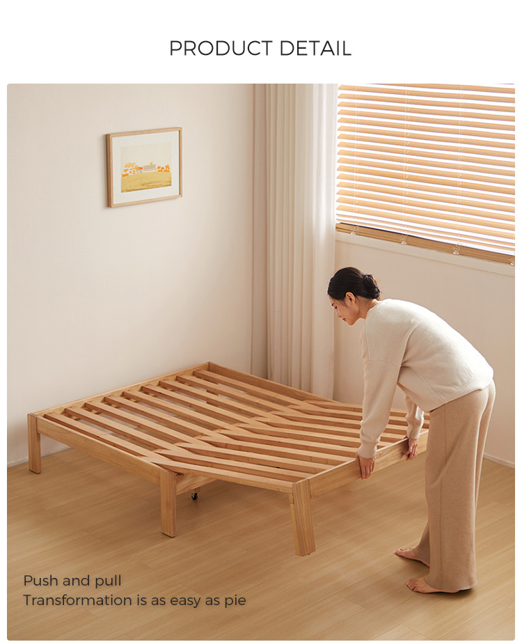 Изготовленная из массива дерева премиум-класса, наша раздвижная кровать предлагает универсальные решения для сна благодаря инновационной регулируемой конструкции. Каркас кровати легко раздвигается для удовлетворения растущих потребностей или дополнительных гостей, а затем убирается для экономии места, когда не используется.