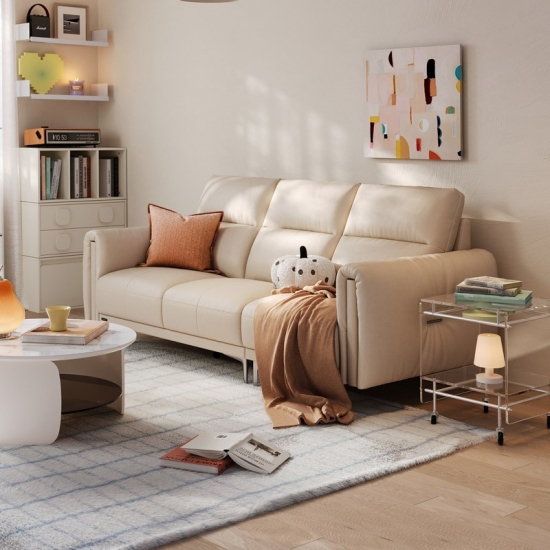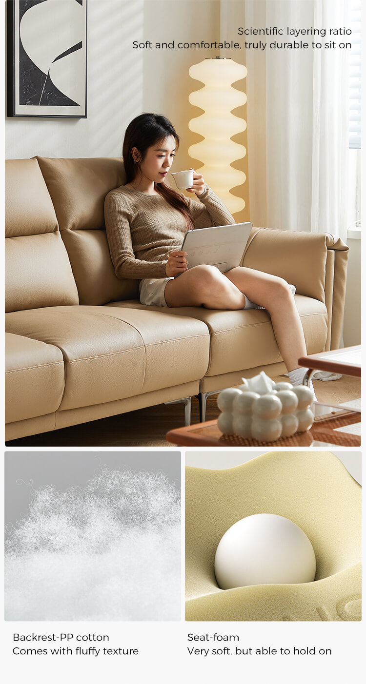 7Кожаный 3-местный диван LINSY бежевого цвета для гостиной PS206-A