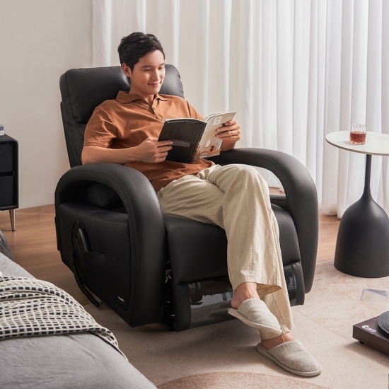 Это кресло с ручным управлением разработано с учетом эргономики и эстетики. Он имеет эргономичную изогнутую форму, обеспечивающую хорошую поддержку тела и комфорт. Угол наклона спинки и сиденья кресла можно регулировать в соответствии с личными потребностями, что позволяет найти наиболее удобное для вас положение и расслабиться.