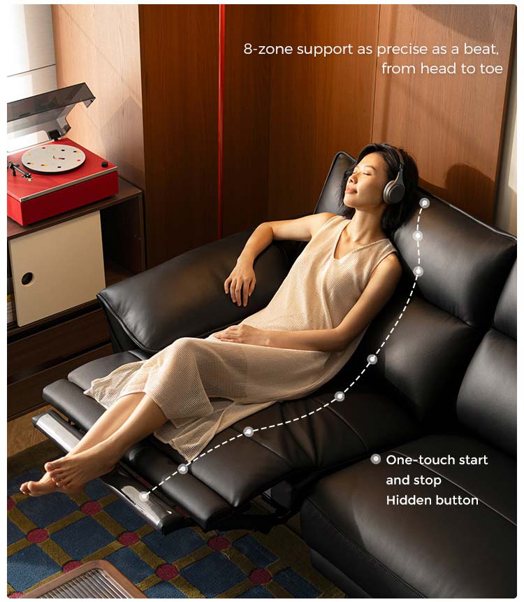 Ощутите непревзойденный комфорт и изысканный стиль с нашим современным трёхместным кожаным диваном-реклайнером. Этот просторный диван, созданный для современной жизни, обит высококачественной кожей, оснащен индивидуальными электроприводами и отличается элегантным силуэтом. Идеально подходит для отдыха, развлечений и создания незабываемых воспоминаний в вашем доме.