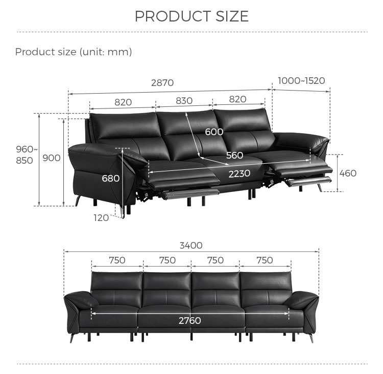7Кожаный диван-реклайнер LINSY черного цвета G282-C