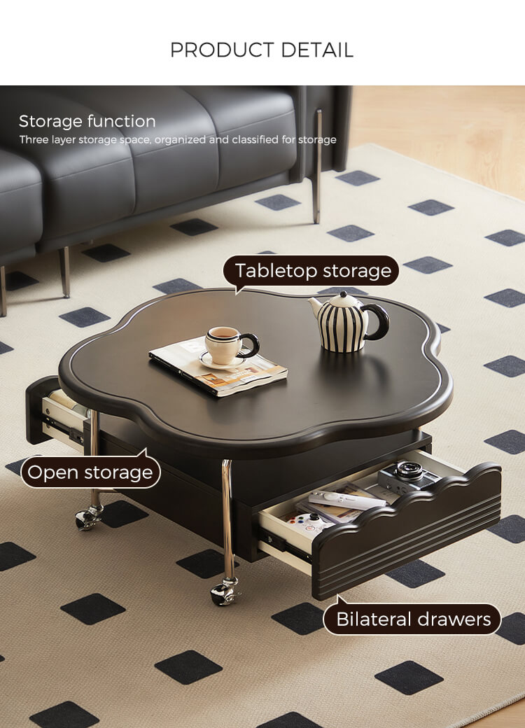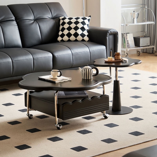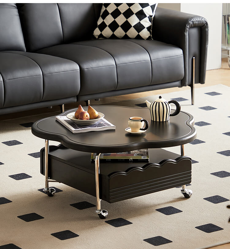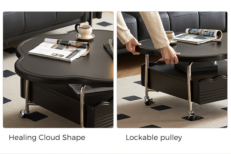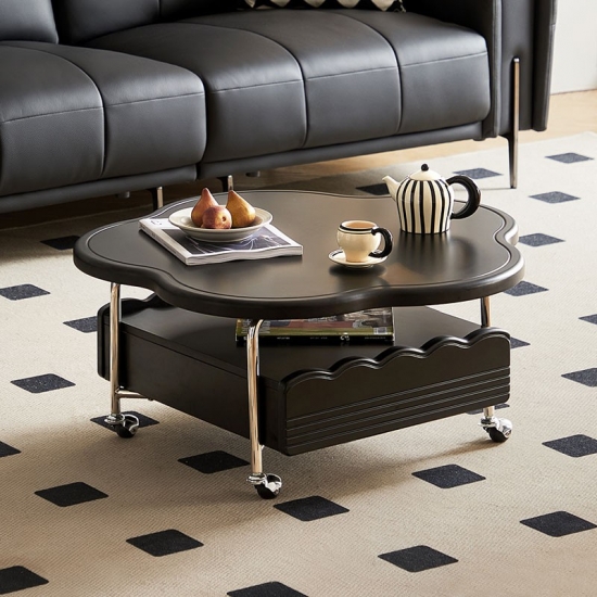 Добавьте нотку современности в свое жилое пространство с этим черным облачным передвижным журнальным столиком. Вдохновленный современным дизайном, этот уникальный предмет сочетает в себе органические изгибы с городской функциональностью, отличаясь гладкой матовой или глянцевой черной отделкой (опционально) и четырьмя поворотными колесами для легкой мобильности. Плавный силуэт создает яркий центр внимания, а прочная столешница предлагает место для напитков, книг или декора.