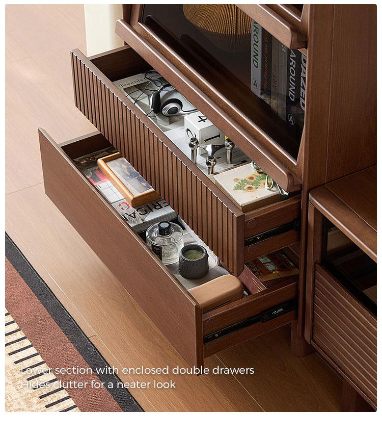 Функциональный дизайн: разработанный для универсального использования, он обеспечивает вместительное скрытое хранилище за дверцами и ящиками, идеально подходящими друг к другу.
