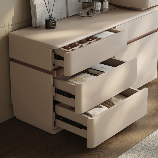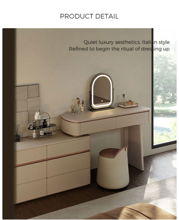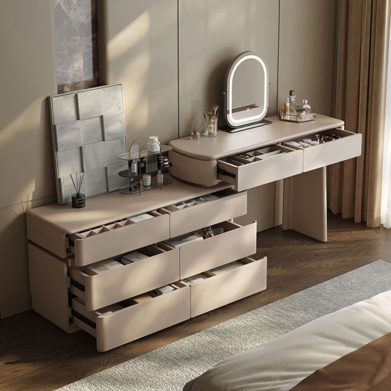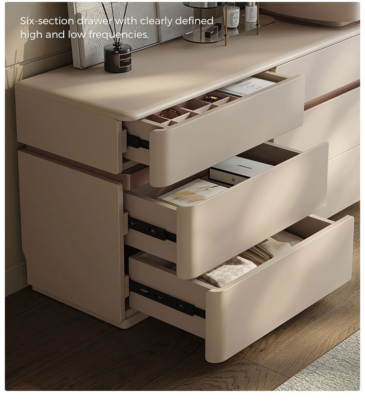 Украсьте свою спальню предметом мебели, сочетающим вечную итальянскую элегантность с оригинальным, продуманным до мелочей дизайном. Наш раздвижной комод под раковину в итальянском стиле — это не просто предмет мебели, это воплощение изысканности и решение для современного дома. Созданный для тех, кто ценит красоту и практичность в равной степени, этот предмет мебели легко превращается из внушительного комода с шестью ящиками в личный уголок для красоты.