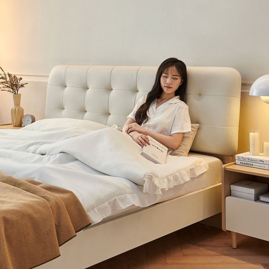 Кровать из цельного куска коровьей кожи высшего качества кажется мягкой и нежной, более текстурированной. Мягкая и эластичная губка внутри обеспечивает надежную поддержку и удобство наклона. Эта стильная кровать привнесет элегантность и изысканность в любой интерьер! Изготовленный из высококачественных материалов, он не только прочный, но и невероятно удобный — идеально подходит для роскошного домашнего уюта.