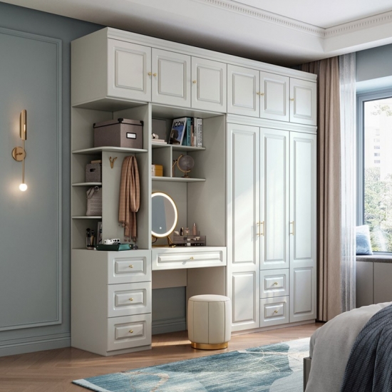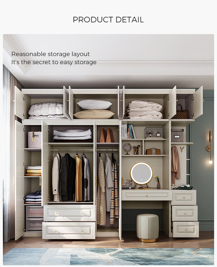 Шкаф действительно многофункциональен и позволяет хранить предметы домашнего обихода в спальне. Этот большой трехдверный гардероб оснащен двумя штангами и имеет удобные вешалки во всю длину, идеально подходящие для длинной и мнущейся одежды, такой как платья, костюмы и пальто. Многослойная конструкция позволяет различным предметам одежды иметь свое собственное расположение.