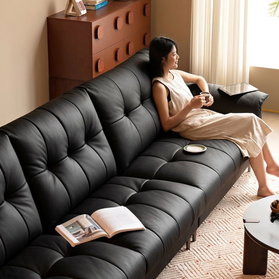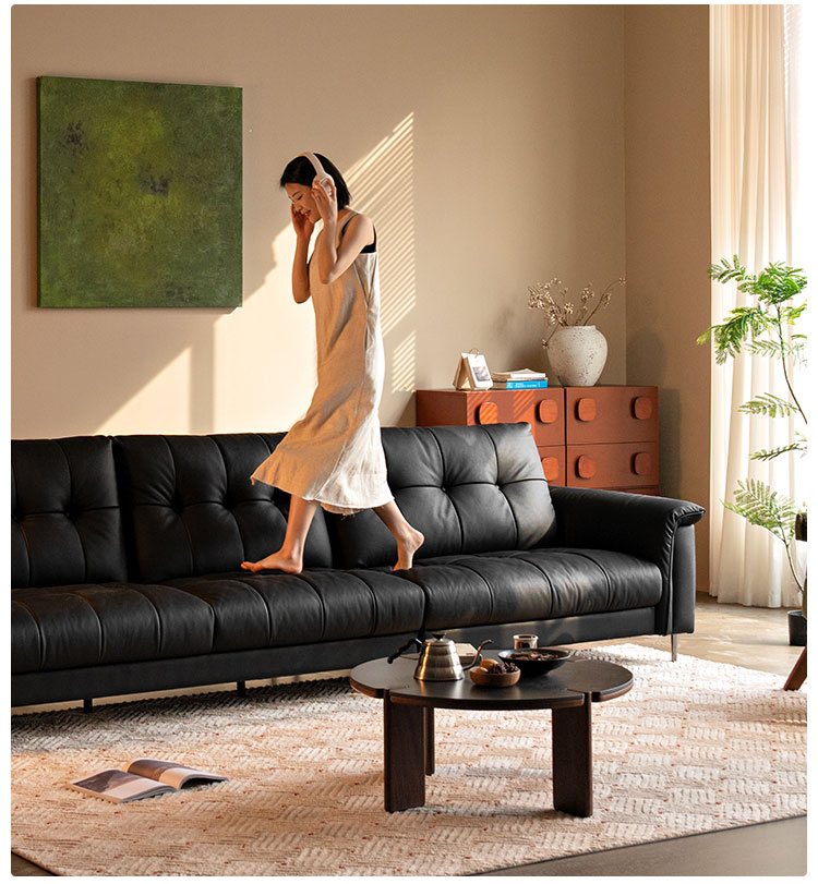 В отличие от плоской черной кожи, наша отделка черного чая Chesterfield прекрасно скрывает царапины, добавляя объемную глубину вашему пространству. Идеальный баланс изысканности и комфорта проживания. Посмотрите на новый мягкий диван черного чая, освежите свою гостиную.