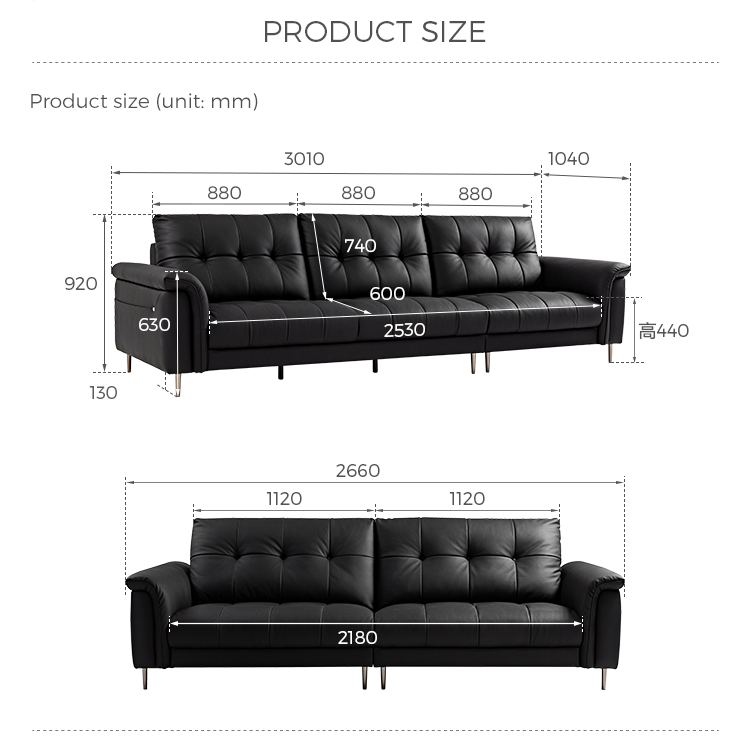 LINSY Современный черный чайный диван Честерфилд из кожи PS660-A |