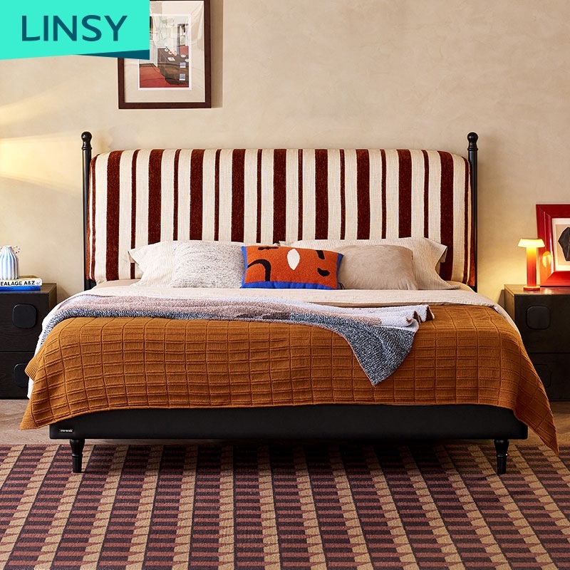 7Кровать LINSY Modern из ткани «кошачий коготь» бордового цвета BC502-A