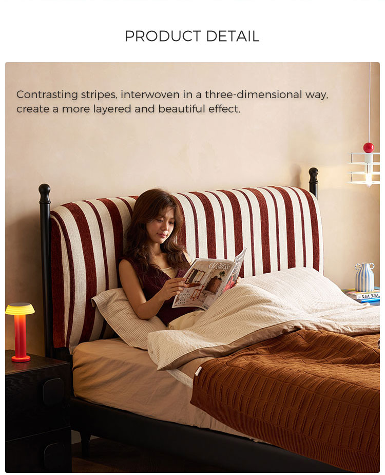 Украсьте свою спальню нашей 1,5-метровой бордовой кроватью «Кошачий коготь». Эта кровать эффектно смотрится благодаря насыщенному винно-красному оттенку и уникальной мягкой текстурированной ткани, устойчивой к царапинам и износу. Она станет идеальным центральным элементом современной роскошной спальни.