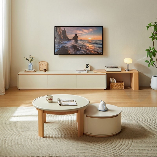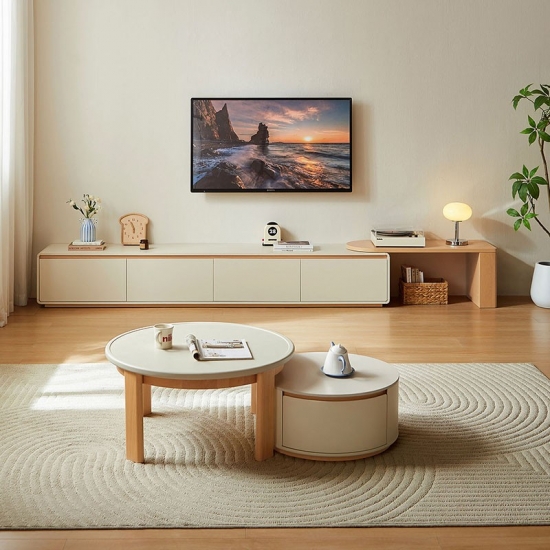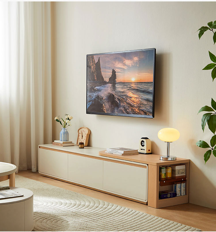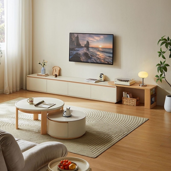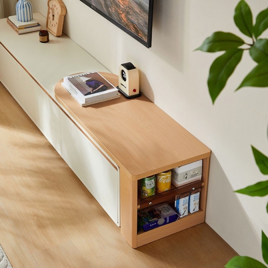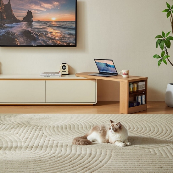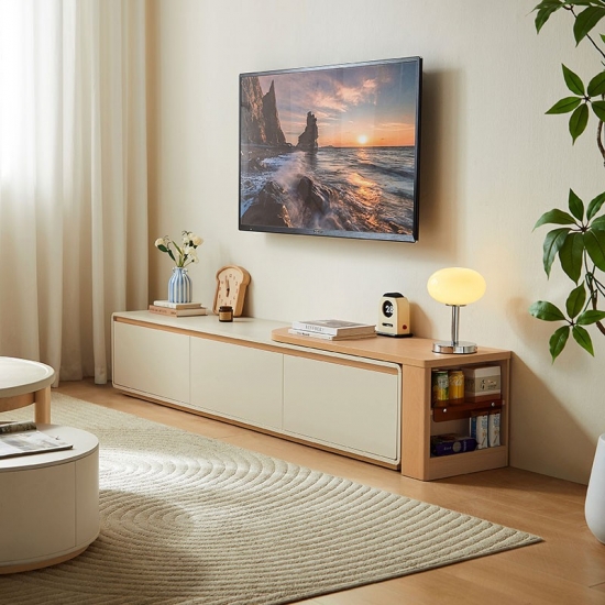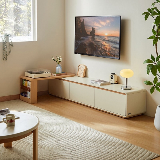 Плавный телескопический механизм позволяет легко регулировать ширину, обеспечивая гибкость в оформлении любого помещения. Встроенная система организации кабелей и вместительные отсеки для хранения позволяют упорядоченно хранить медиафайлы, скрывая их от посторонних глаз. Эта консоль подойдет как для небольшой квартиры, так и для просторной гостиной — стильная, практичная и всегда пропорциональная.