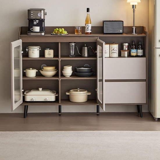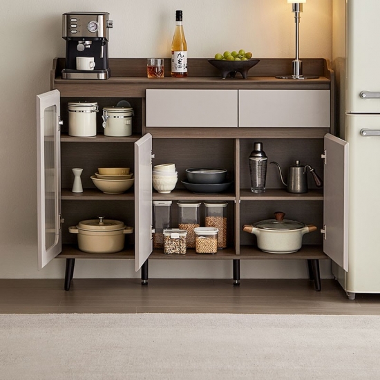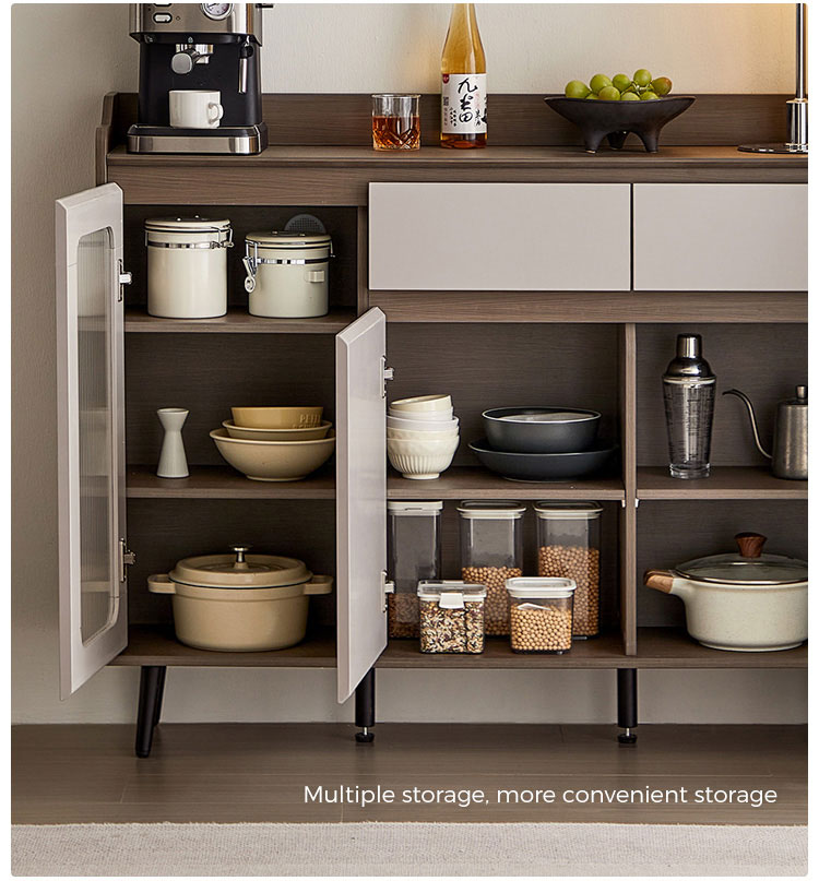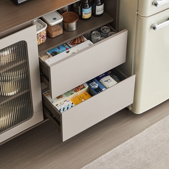 Этот стильный, низкопрофильный буфет предлагает практичное место для хранения и компактную конструкцию. Ширина всего от 0,8 до 1,4 метра, небольшая высота обеспечивает лёгкий доступ, сохраняя при этом вместительность. Этот универсальный предмет мебели идеально подходит в качестве буфета в столовой, консоли в гостиной или органайзера в прихожей. Он оснащен плавно выдвигающимися ящиками и дверцами шкафа с регулируемыми полками и открытыми отсеками для хранения.