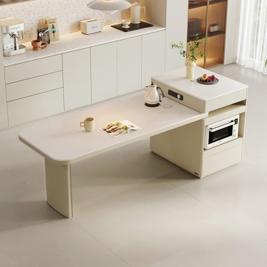 Этот изысканный белый кухонный остров — центральный элемент современной жизни. Изготовленный из прочного белого спеченного камня, он обеспечивает бесшовное и гигиеничное рабочее пространство, идеально гармонирующее с окружающим освещением. Остров имеет характерное деревянное основание. , добавляя тепло и органическую текстуру для создания гостеприимной атмосферы.