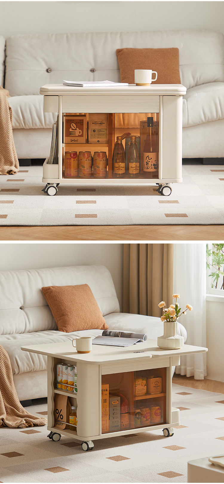 7Linsy Modern Style Movelable Table Beige Color Coffee Safet Lafe с колесами LH202J1-A