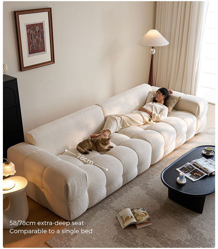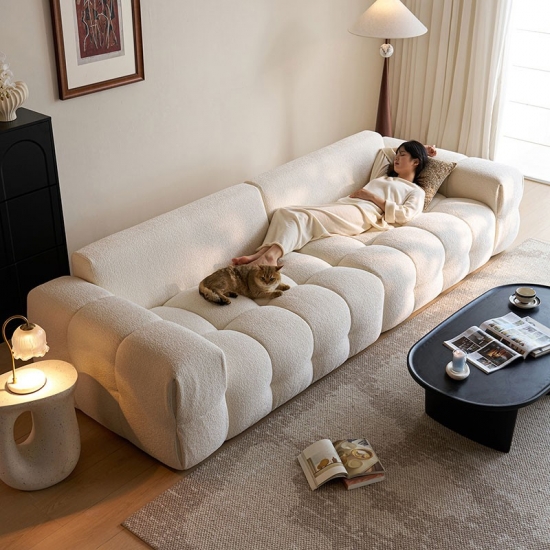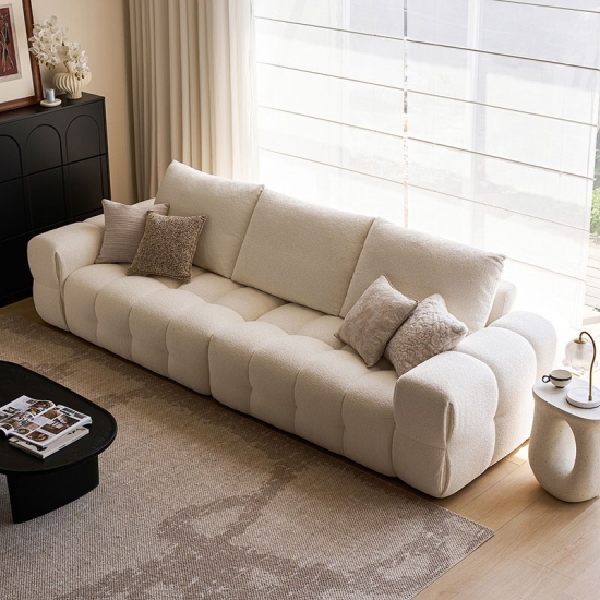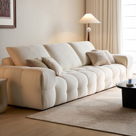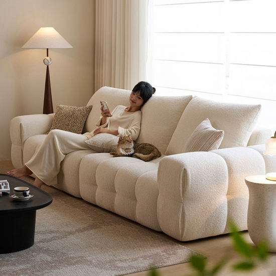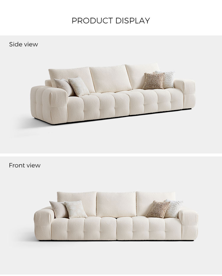 Представляем центральный элемент современной жизни: наш белоснежный тканевый диван. Вдохновленный чистыми линиями и ритмичной элегантностью формы тофу, этот диван сочетает минималистичный дизайн с глубоким, уютным комфортом. Это не просто предмет мебели; это воплощение спокойного, современного стиля.