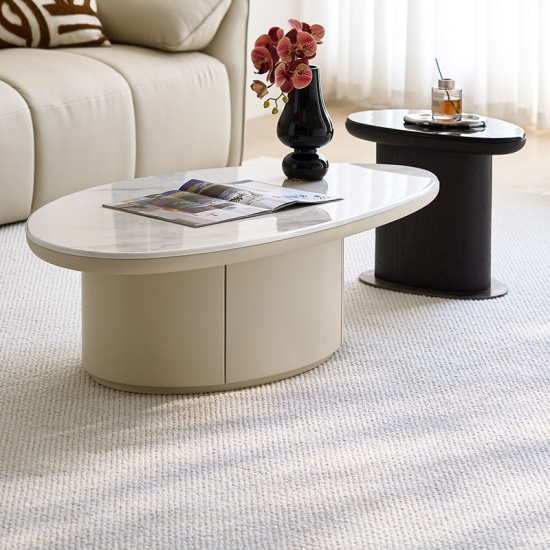 Откройте для себя современную элегантность с этим скульптурным белым журнальным столиком, отличающимся эффектным неровным силуэтом, который добавит изюминку любому жилому пространству. Его лаконичный дизайн создаёт уютную, непринуждённую атмосферу, идеально подходящую для зон отдыха или минималистичных интерьеров.