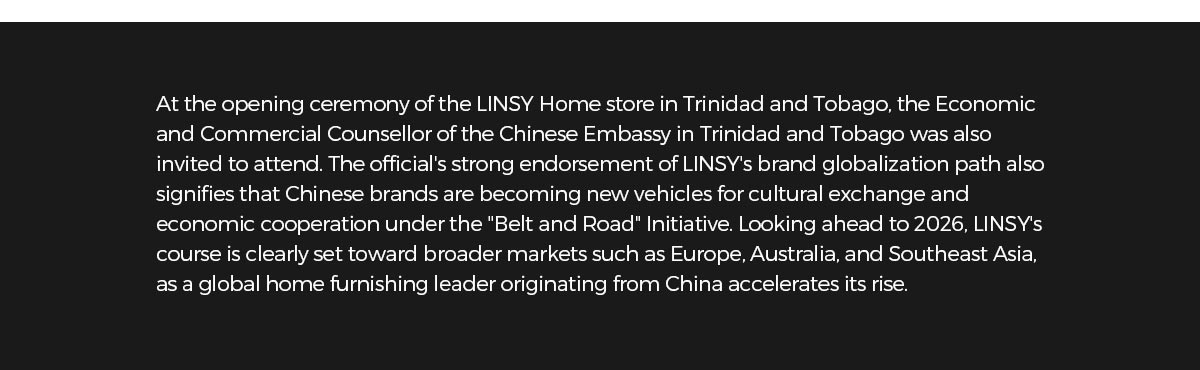 On November 22, 2025, LINSY HomeFurniture officially landed in the Republic of Trinidad and Tobago, asouthern Caribbean island nation,with the grand opening of its firstflagship store in the capital. This marks a key step in LINSY's globalstrategic layout, aiming to bring a'fashionable, quality, and high-value"home lifestyle to consumers in Trinidad and Tobago and across the wider Caribbean region.