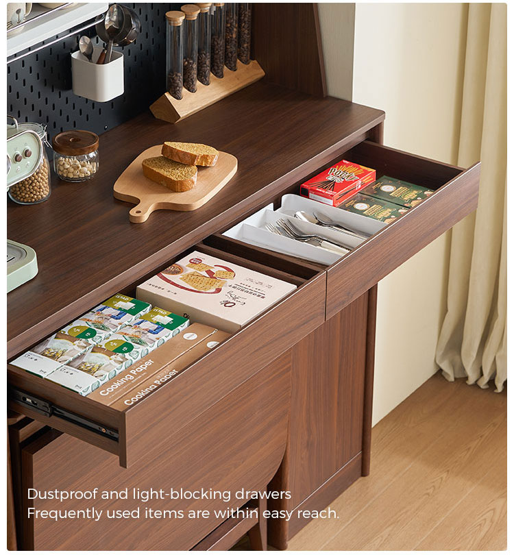 Этот новый буфет сочетает в себе вневременной винтажный шарм и исключительную функциональность. Его насыщенная ретро-отделка украсит любую обеденную зону, а продуманная многоярусная конструкция обеспечит достаточно места для хранения всех необходимых принадлежностей, поддерживая порядок. Изготовленный из прочных материалов — износостойкой меламиновой плиты в сочетании с прочным деревянным каркасом — он гарантирует исключительную прочность и долговечность при ежедневном использовании.