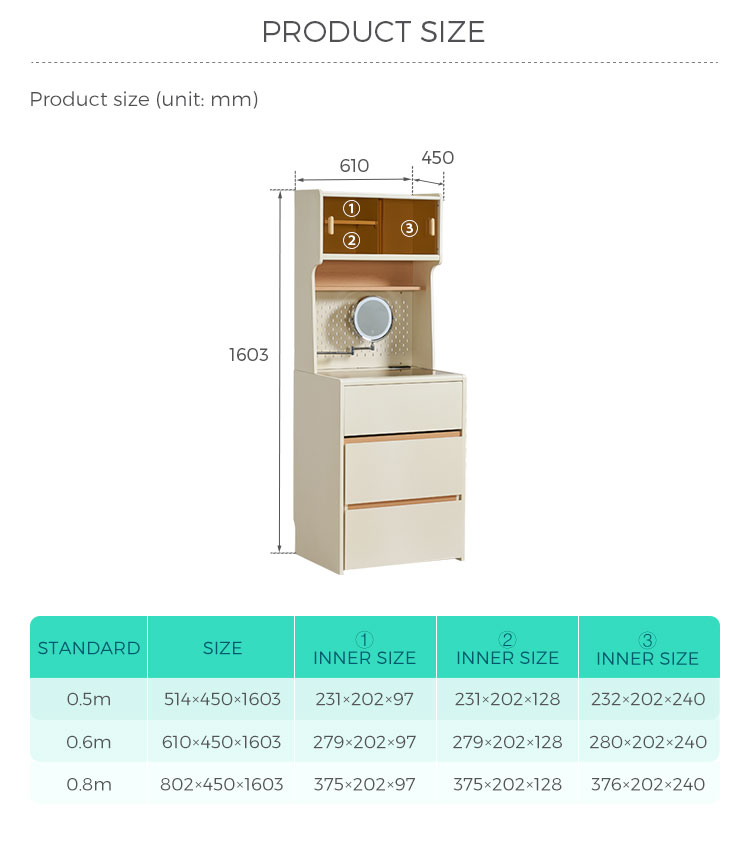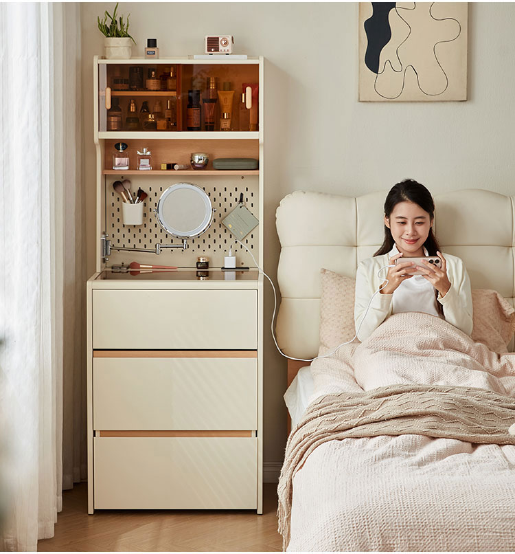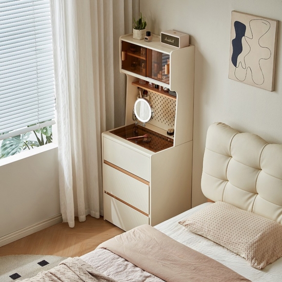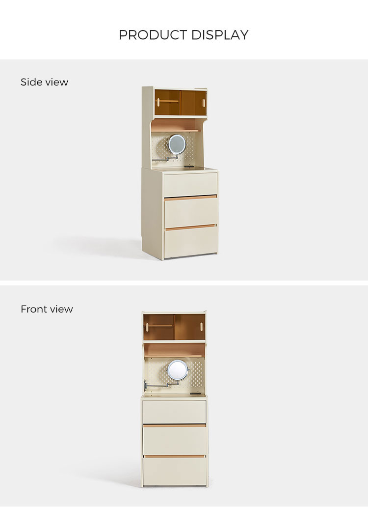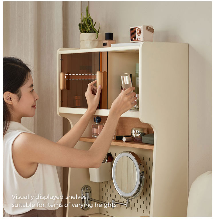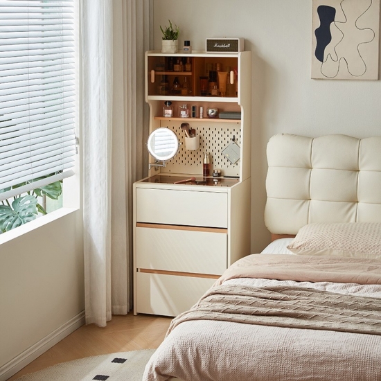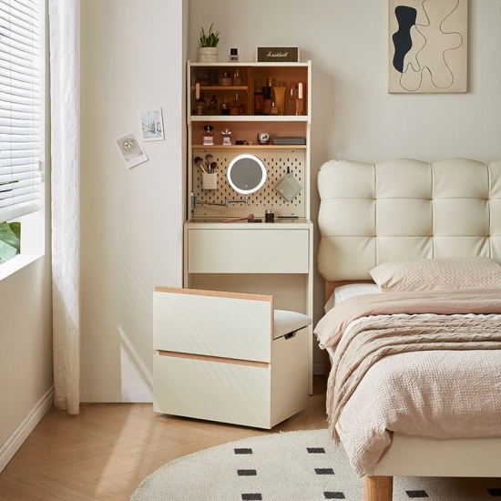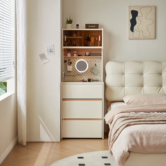 Этот компактный туалетный столик длиной 0,6 метра органично сочетает в себе элегантный дизайн и высокий шкафчик, создавая единый современный предмет мебели. Выполненный в чистом белом цвете, его минималистичный дизайн включает в себя встроенную перфорированную заднюю панель. Это продуманное дополнение обеспечивает превосходную организацию пространства — используйте крючки, полки и аксессуары, чтобы аккуратно разместить косметические средства, средства по уходу за кожей и аксессуары, и держать их под рукой.