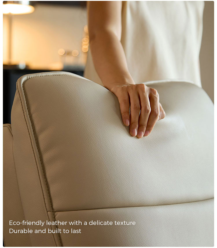 Это кресло-реклайнер, сочетающее в себе стиль и функциональность, имеет следующие особенности: роскошная кожа высшего качества Уникальный теплый белый оттенок, который противостоит холоду, создавая уютную и воздушную атмосферу. глубокое мягкое сиденье и высокая спинка Они имеют эргономичный дизайн, обеспечивающий поддержку всего тела, идеально подходящий для длительного чтения, работы или просто отдыха.