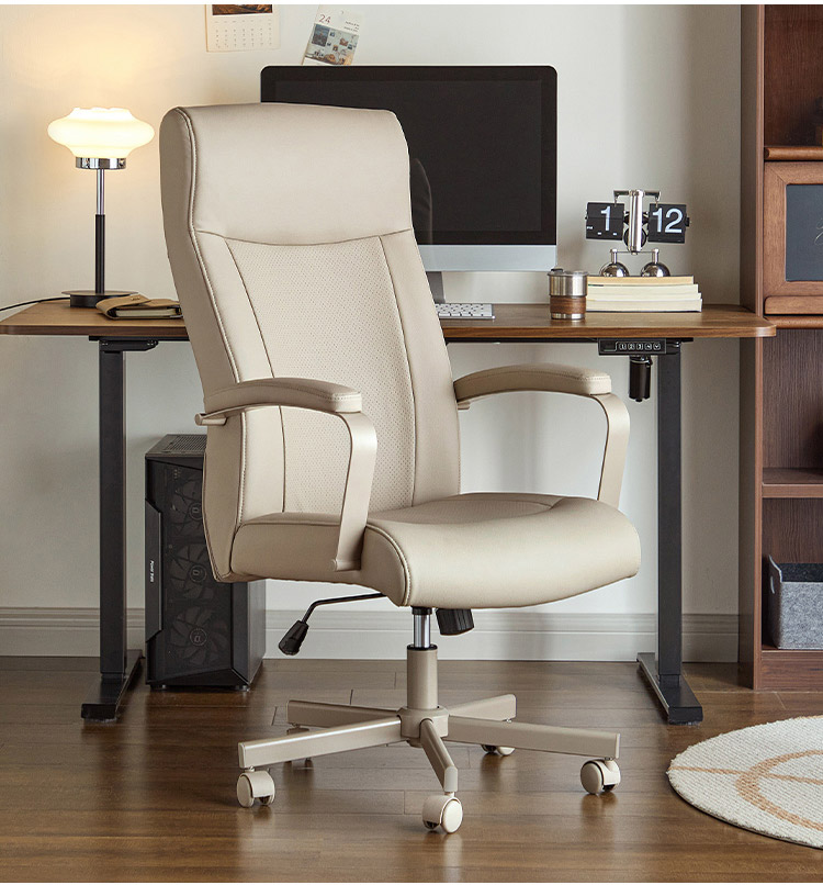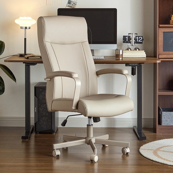 Наше кресло для домашнего офиса, созданное для комфорта и стиля, сочетает в себе обивку из высококачественной искусственной кожи и прочное основание из массива дерева. Прочные железные подлокотники обеспечивают идеальную поддержку при длительной работе, делая это кресло долговечным и элегантным центральным элементом вашего домашнего офиса.
