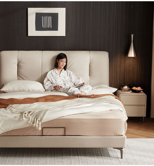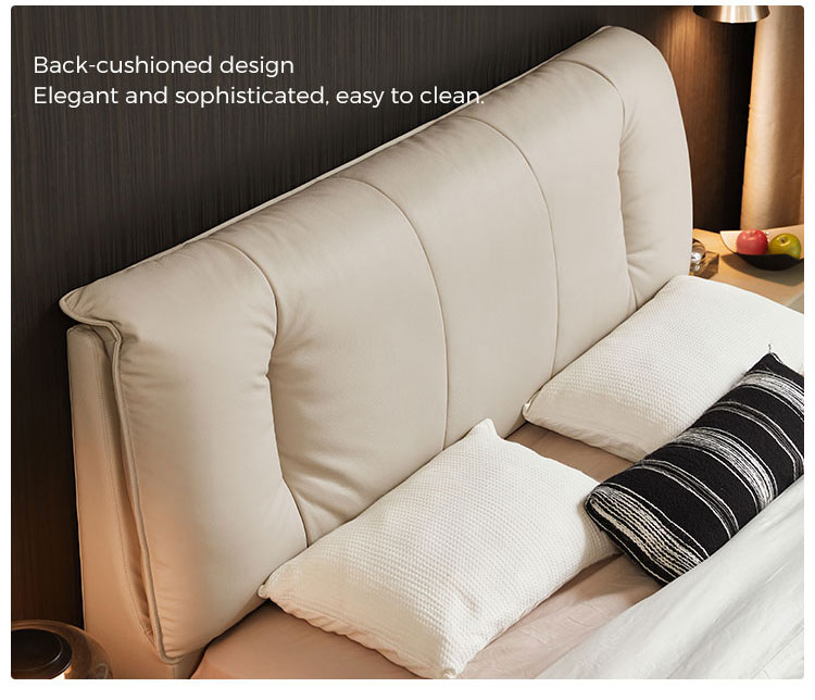 7Современная кровать PC591-A с обивкой из кожи и массива дерева