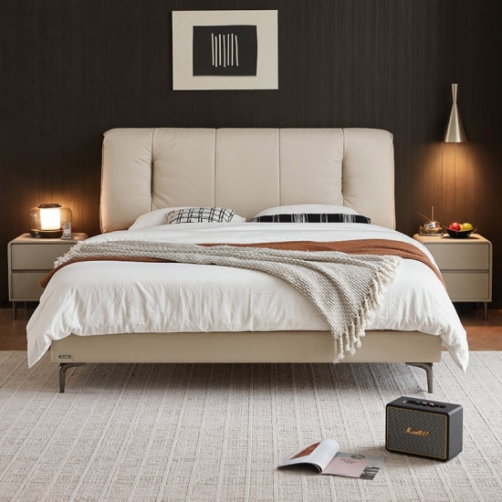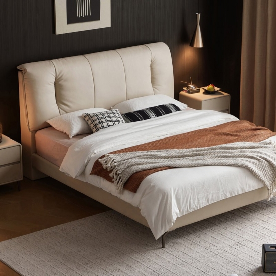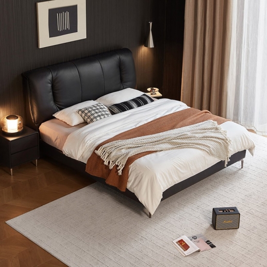 Эта кровать, созданная для тех, кто ценит долговечность и современный дизайн, органично сочетает в себе естественную теплоту массива дерева и роскошные ощущения высококачественной натуральной кожи. Четкие линии, аккуратная строчка и минималистичный дизайн — вот что отличает это изделие. Оно служит изысканным центральным элементом, легко дополняя различные современные, минималистичные или переходные стили оформления спальни.