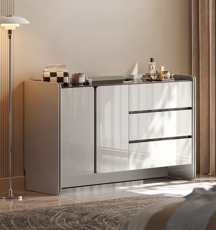 Современный комод для спальни светло-серого цвета с зеркалом NV3C-C |