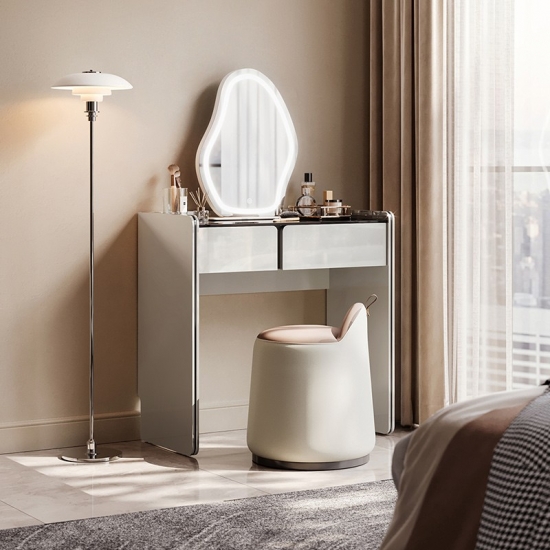 7Современный комод для спальни светло-серого цвета с зеркалом NV3C-C