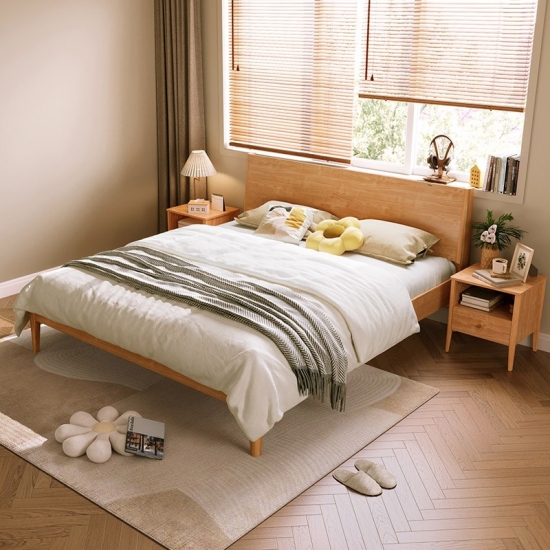 7Современная двуспальная кровать LINSY из цельного дерева OU2A-A