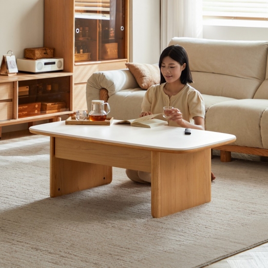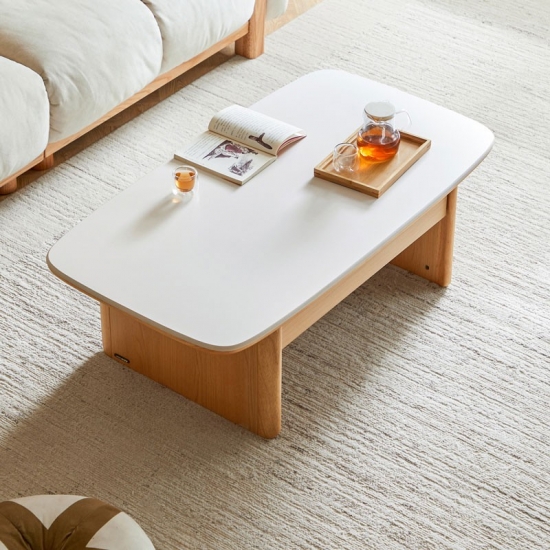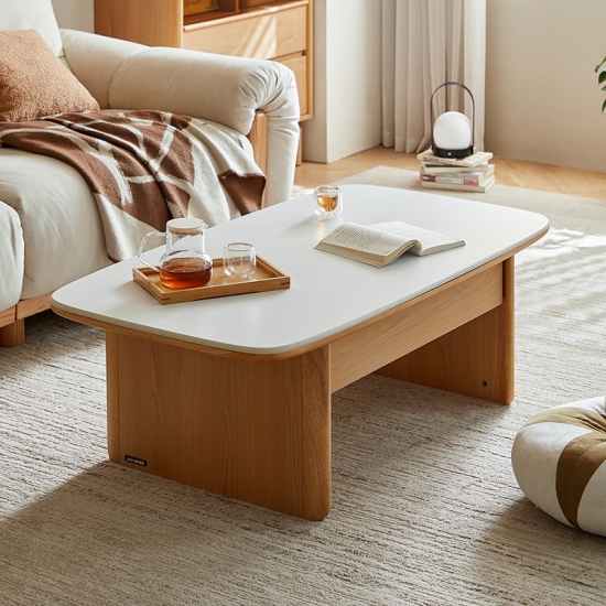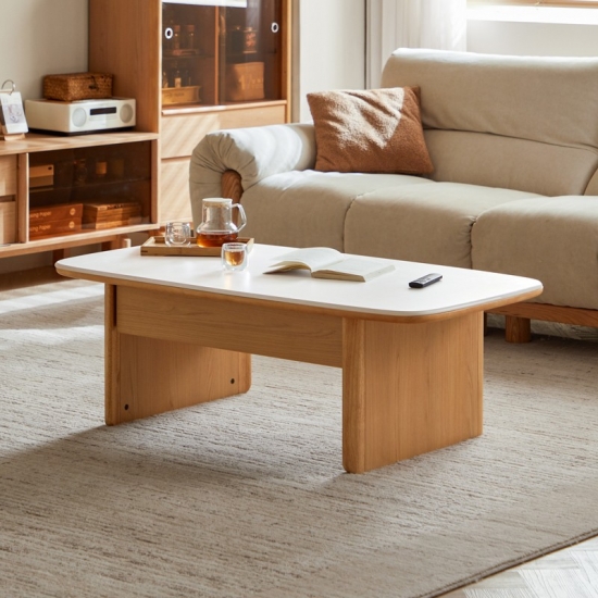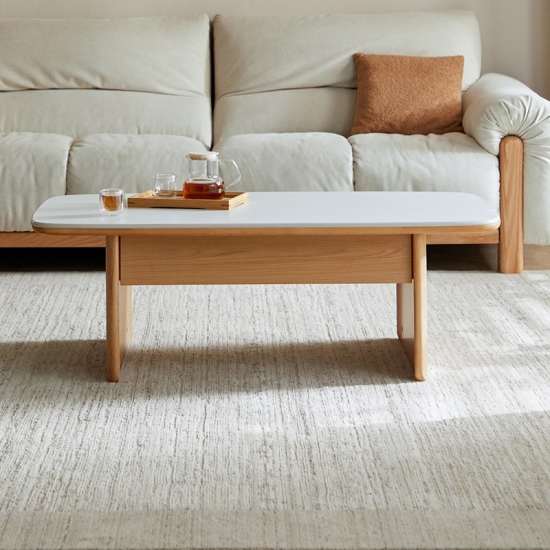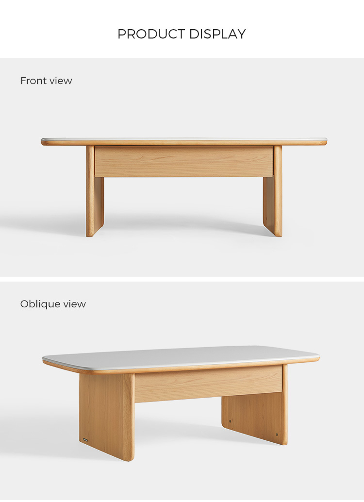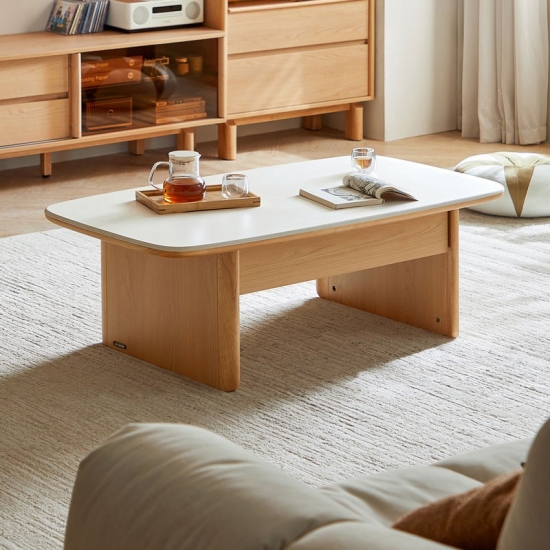 Современный прямоугольный журнальный столик из массива дерева и мраморной столешницы UB1L-A |