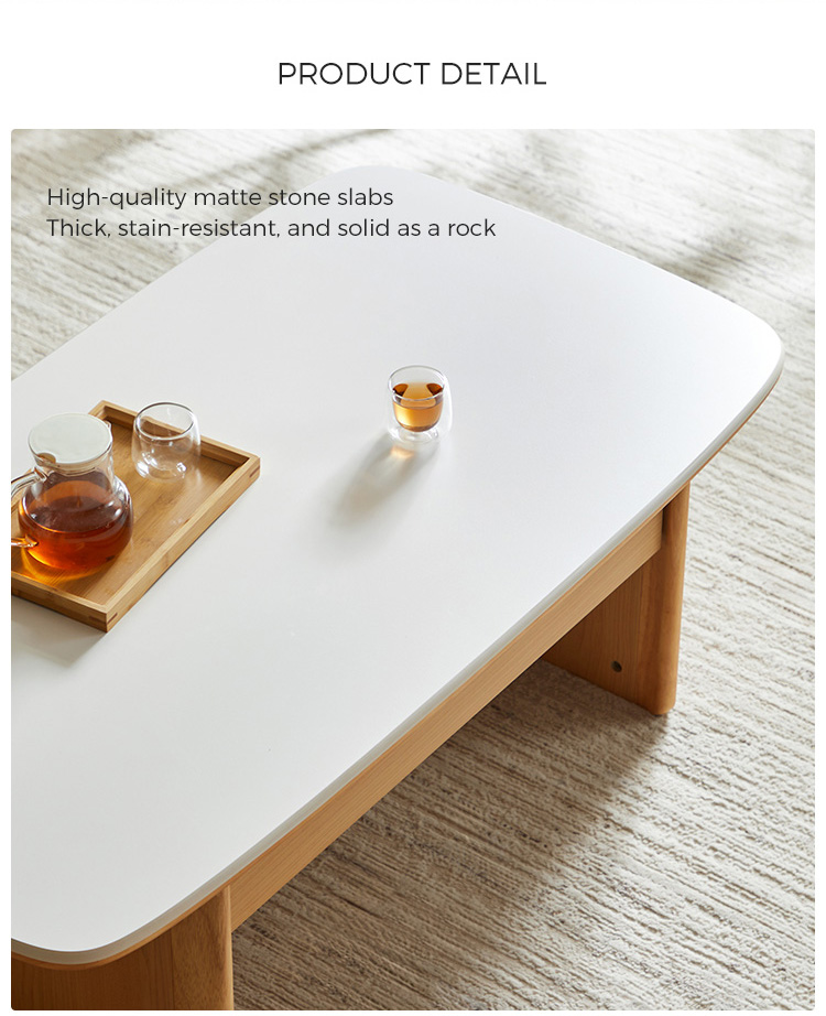 7Современный прямоугольный журнальный столик из массива дерева и мраморной столешницы UB1L-A