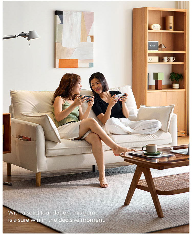 7Современный белый двухместный диван с тканевой обивкой, комфортный и минималистичный, модель BS806-A