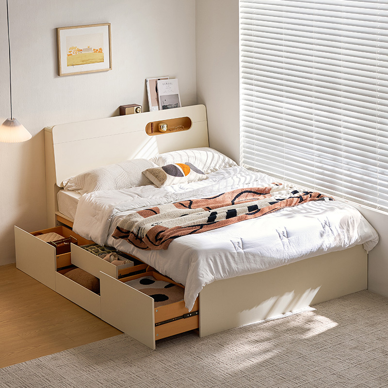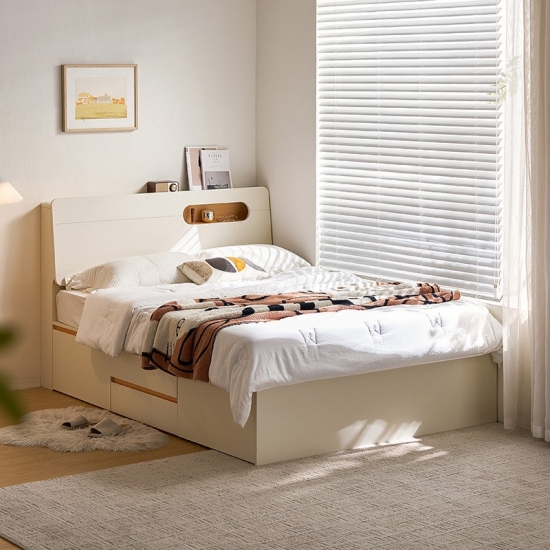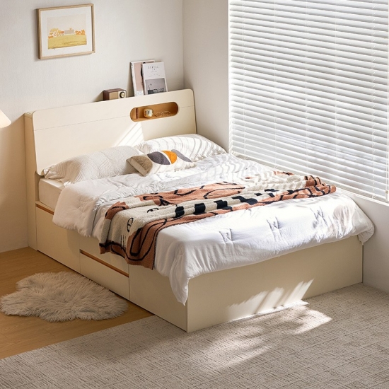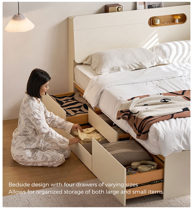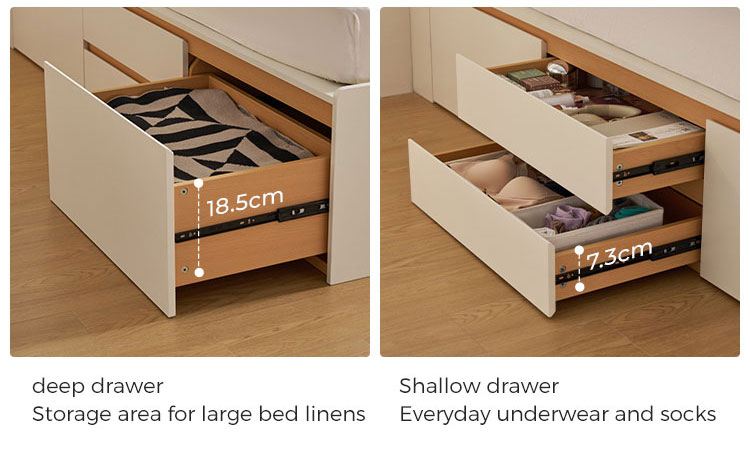 Интегрированное решение для хранения данных: Оснащен просторными выдвижными ящиками или откидными отделениями по бокам, обеспечивающими достаточно места для хранения постельного белья, сезонной одежды или личных вещей, не занимая при этом много места на полу.