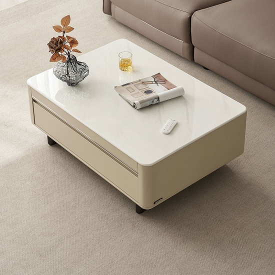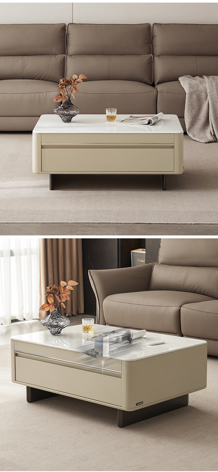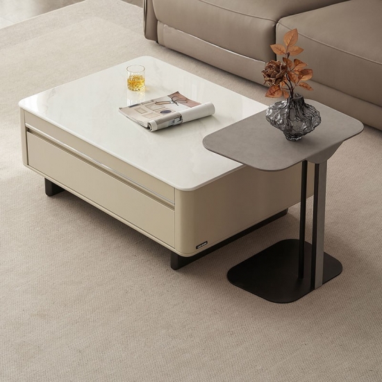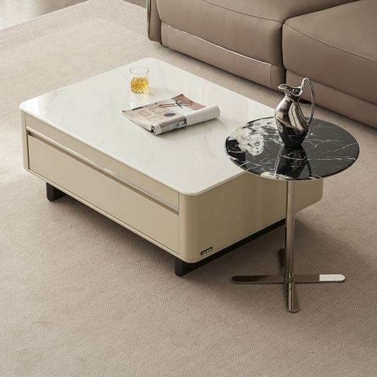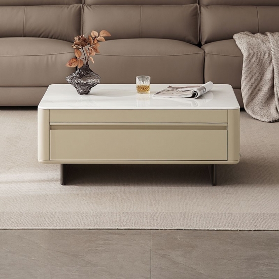 7Современный белый квадратный кофейный столик из каменного стола с ящиками VK2L-A